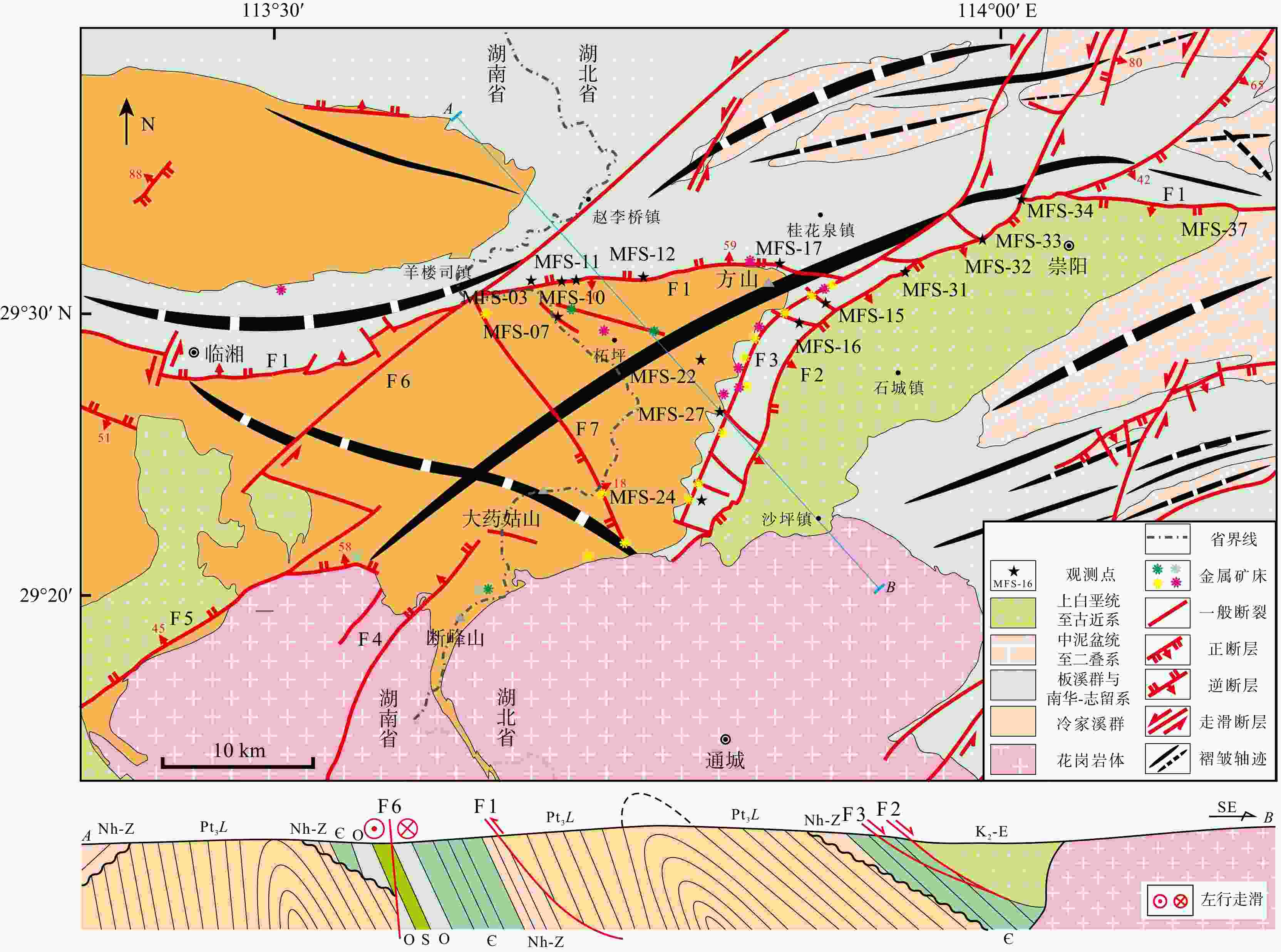 Methods This study investigates the structural control of polymetallic deposits in southern Hubei Province utilizing structural analysis, paleostress inversions of fault-slip data, and the spatial distribution of polymetallic ore deposits.