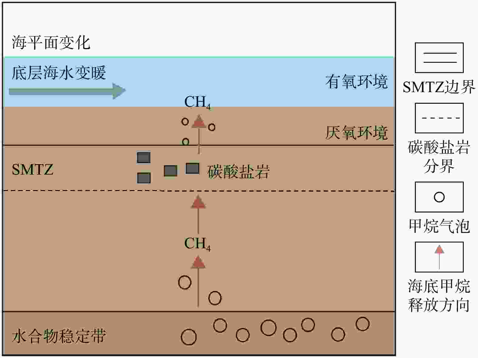 [1] 贾永刚, 阮文凤, 胡乃利, 等. 现代暖期气候变暖对南海北部陆坡天然气水合物分解潜在影响[J]. 地学前缘, 2022, 29(4): 191-201.JIA Y G, RUAN W F, HU N L, et al. Hydrate dissociation on the northern slope of the South China Sea: Potential effects from climate warming in the current warm period[J]. Earth Science Frontiers, 2022, 29(4): 191-201. (in Chinese with English abstract [2] RUPPEL C D, KESSLER J D. The interaction of climate change and methane hydrates[J]. Reviews of Geophysics, 2017, 55(1): 126-168. doi: 10.1002/2016RG000534 [3] ZHAO J F, SONG Y C, LIM X L, et al. Opportunities and challenges of gas hydrate policies with consideration of environmental impacts[J]. Renewable and Sustainable Energy Reviews, 2017, 70: 875-885. doi: 10.1016/j.rser.2016.11.269 [4] TEICHERT B M A, EISENHAUER A, BOHRMANN G, et al. U/Th systematics and ages of authigenic carbonates from Hydrate Ridge, Cascadia Margin: Recorders of fluid flow variations[J]. Geochimica et Cosmochimica Acta, 2003, 67(20): 3845-3857. doi: 10.1016/S0016-7037(03)00128-5 [5] 栾锡武, 刘鸿, 岳保静, 等. 海底冷泉在旁扫声纳图像上的识别[J]. 现代地质, 2010, 24(3): 474-480. doi: 10.3969/j.issn.1000-8527.2010.03.009LUAN X W, LIU H, YUE B J, et al. Characteristics of cold seepage on side scan sonar sonogram[J]. Geoscience, 2010, 24(3): 474-480. (in Chinese with English abstract doi: 10.3969/j.issn.1000-8527.2010.03.009 [6] WANG M Y, CHEN T Y, FENG D, et al. Uranium-thorium isotope systematics of cold-seep carbonate and their constraints on geological methane leakage activities[J]. Geochimica et Cosmochimica Acta, 2022, 320: 105-121. doi: 10.1016/j.gca.2021.12.016 [7] ZHANG Z G, WANG Y, GAO L F, et al. Marine gas hydrates: Future energy or environmental killer?[J]. Energy Procedia, 2012, 16: 933-938. doi: 10.1016/j.egypro.2012.01.149 [8] 唐常锐, 徐秀刚, 孙秉才, 等. 天然气水合物分解诱发海底滑坡影响因素分析及致灾风险评价[J]. 海洋地质前沿, 2021, 37(5): 14-21.TANG C R, XU X G, SUN B C, et al. Influence factors and risk assessment for seabed landslides induced by natural gas hydrate decomposition[J]. Marine Geology Frontiers, 2021, 37(5): 14-21. (in Chinese with English abstract [9] SEROV P, VADAKKEPULIYAMBATTA S, MIENERT J, et al. Postglacial response of Arctic Ocean gas hydrates to climatic amelioration[J]. Proceedings of the National Academy of Sciences of the United States of America, 2017, 114(24): 6215-6220. [10] INGLIS G N, ROHRSSEN M, KENNEDY E M, et al. Terrestrial methane cycle perturbations during the onset of the Paleocene-Eocene thermal maximum[J]. Geology, 2021, 49(5): 520-524. doi: 10.1130/G48110.1 [11] DAVIES R J, MORALES MAQUEDA M Á, LI A, et al. Millennial-scale shifts in the methane hydrate stability zone due to Quaternary climate change[J]. Geology, 2017, 45(11): 1027-1030. doi: 10.1130/G39611.1 [12] GARCIA-TIGREROS F, LEONTE M, RUPPEL C D, et al. Estimating the impact of seep methane oxidation on ocean pH and dissolved inorganic radiocarbon along the U. S. mid-Atlantic bight[J]. Journal of Geophysical Research (Biogeosciences), 2021, 126(1): e2019JG005621. [13] 沈奥, 孙启良, 蔡砥柱, 等. 海底麻坑的特征、分类与成因机制[J]. 地质科技通报, 2023, 42(1): 204-217.SHEN A, SUN Q L, CAI D Z, et al. Characteristics, classification and genetic mechanism of pockmarks[J]. Bulletin of Geological Science and Technology, 2023, 42(1): 204-217. (in Chinese with English abstract [14] WALLMANN K, PINERO E, BURWICZ E, et al. The global inventory of methane hydrate in marine sediments: A theoretical approach[J]. Energies, 2012, 5(7): 2449-2498. doi: 10.3390/en5072449 [15] JUDD A G, HOVLAND M. Seabed fluid flow: The impact on geology, biology and the marine environment[M]. Cambridge, United Kingdom: Cambridge University Press, 2009. [16] MILKOV A V, SASSEN R, APANASOVICH T V, et al. Global gas flux from mud volcanoes: A significant source of fossil methane in the atmosphere and the ocean[J]. Geophysical Research Letters, 2003, 30(2): 1037. [17] YANG H L, YU S, LU H L. Iron-coupled anaerobic oxidation of methane in marine sediments: A review[J]. Journal of Marine Science and Engineering, 2021, 9(8): 875. doi: 10.3390/jmse9080875 [18] PARKES R J, WELLSBURY P, MATHER I D, et al. Temperature activation of organic matter and minerals during burial has the potential to sustain the deep biosphere over geological timescales[J]. Organic Geochemistry, 2007, 38(6): 845-852. doi: 10.1016/j.orggeochem.2006.12.011 [19] MIDDELBURG J J. A simple rate model for organic matter decomposition in marine sediments[J]. Geochimica et Cosmochimica Acta, 1989, 53(7): 1577-1581. doi: 10.1016/0016-7037(89)90239-1 [20] CUI M M, MA A Z, QI H Y, et al. Anaerobic oxidation of methane: An "active" microbial process[J]. Microbiology Open, 2015, 4(1): 1-11. doi: 10.1002/mbo3.232 [21] NAUHAUS K, ALBRECHT M, ELVERT M, et al. In vitro cell growth of marine archaeal-bacterial consortia during anaerobic oxidation of methane with sulfate[J]. Environmental Microbiology, 2007, 9(1): 187-196. doi: 10.1111/j.1462-2920.2006.01127.x [22] GUAN H X, LIU L, WU N Y, et al. South China Sea seeps[M]. Singapore: Springer Nature Singapore, 2023: 189-209. [23] JOYE S B, BOETIUS A, ORCUTT B N, et al. The anaerobic oxidation of methane and sulfate reduction in sediments from Gulf of Mexico cold seeps[J]. Chemical Geology, 2004, 205(3/4): 219-238. [24] 姚伯初. 南海天然气水合物的形成条件和分布特征[J]. 海洋石油, 2007, 27(1): 1-10. doi: 10.3969/j.issn.1008-2336.2007.01.001YAO B C. The forming condition and distribution characteristics of the gas hydrate in the South China Sea[J]. Offshore Oil, 2007, 27(1): 1-10. (in Chinese with English abstract doi: 10.3969/j.issn.1008-2336.2007.01.001 [25] 赵斌, 刘胜旋, 李丽青, 等. 南海冷泉分布特征及油气地质意义[J]. 海洋地质前沿, 2018, 34(10): 32-43.ZHAO B, LIU S X, LI L Q, et al. Dist