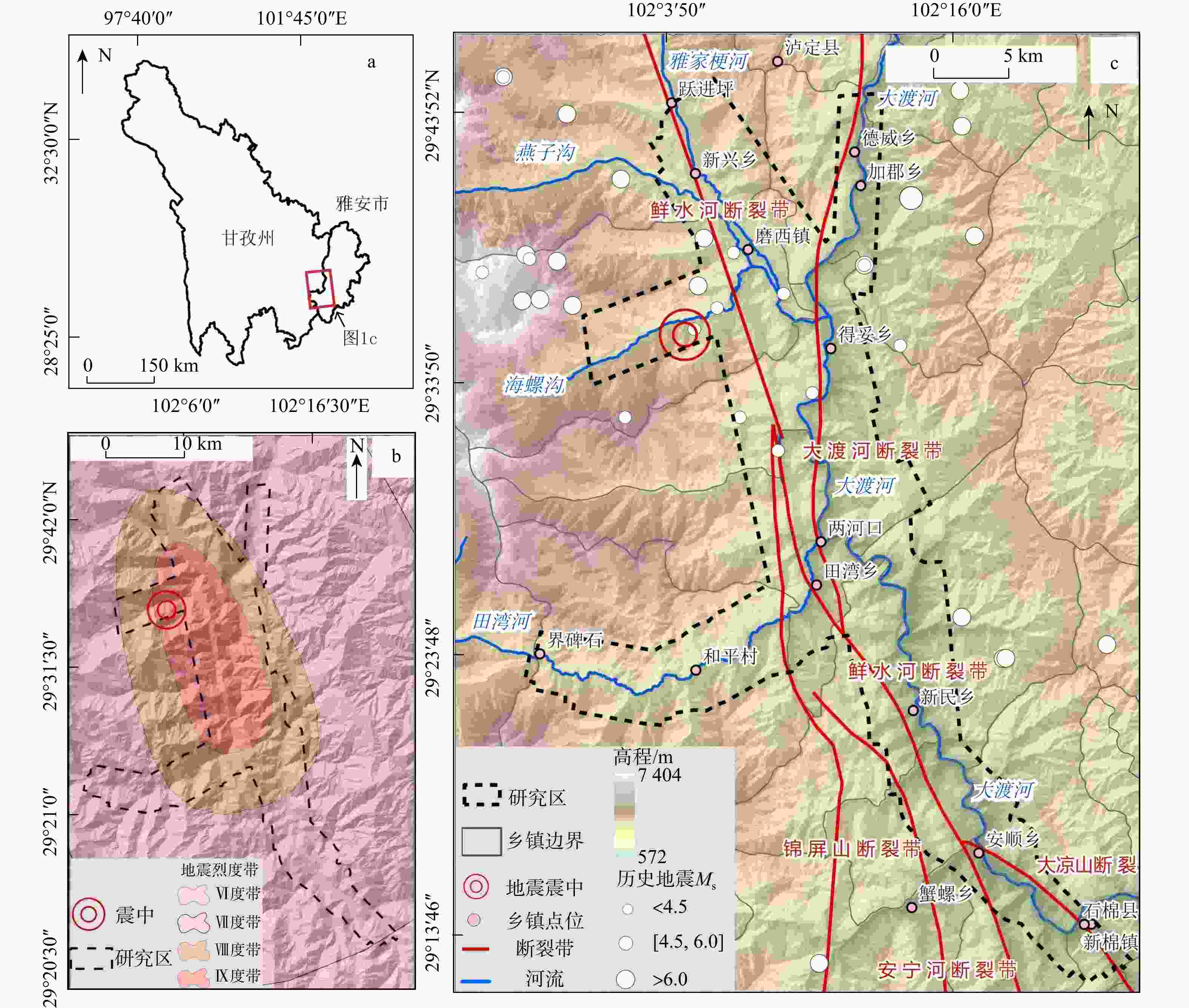研究地震诱发滑坡的空间分布规律,不仅能为灾区地质灾害隐患排查、灾情评估等提供重要依据,同时对后期灾后重建、灾后安置选址以及地质灾害防治等工作具有重要意义。以2022年9月5日四川甘孜泸定县