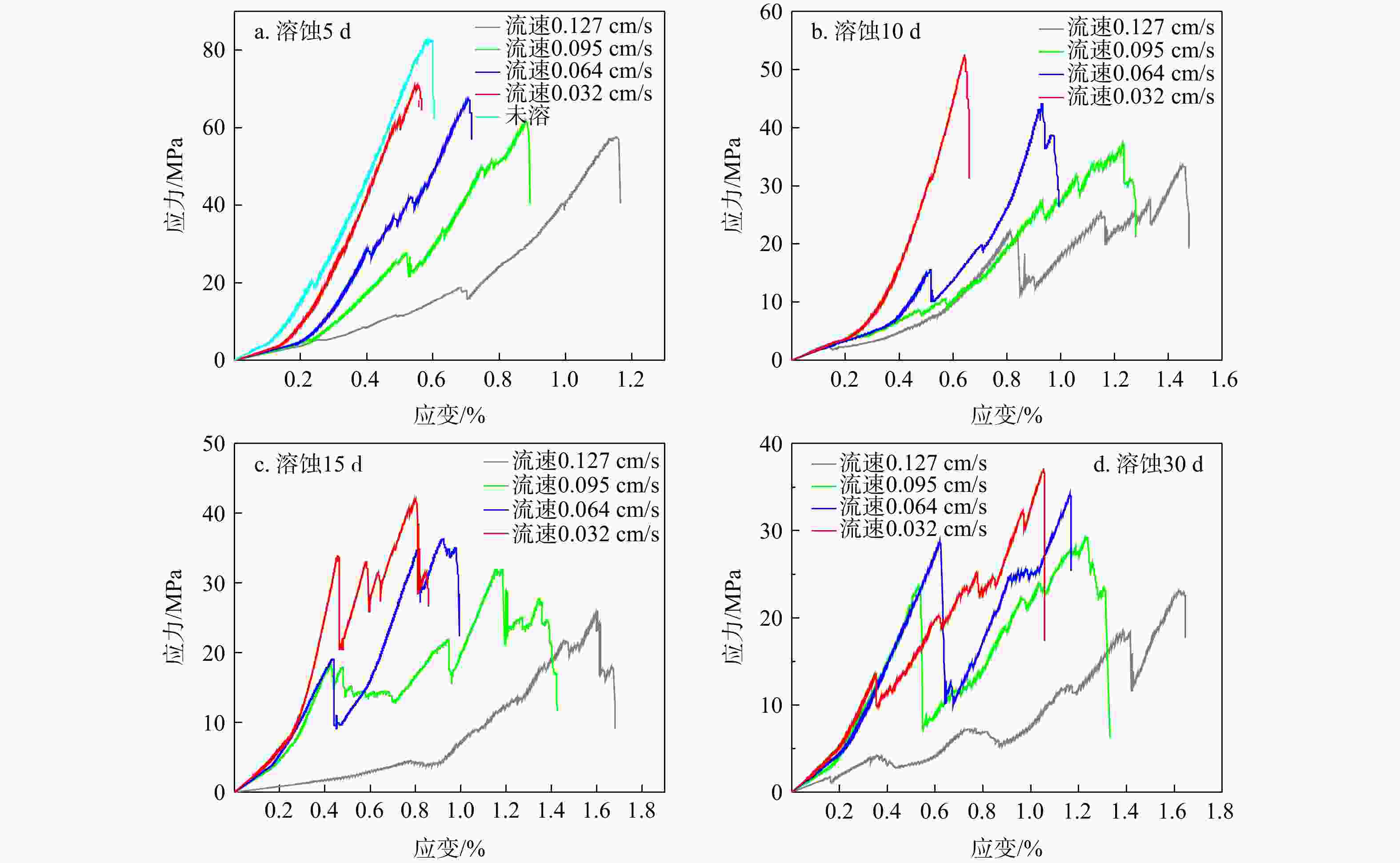 Figure 6.  Uniaxial compressive stress-strain of samples under different dissolution conditions