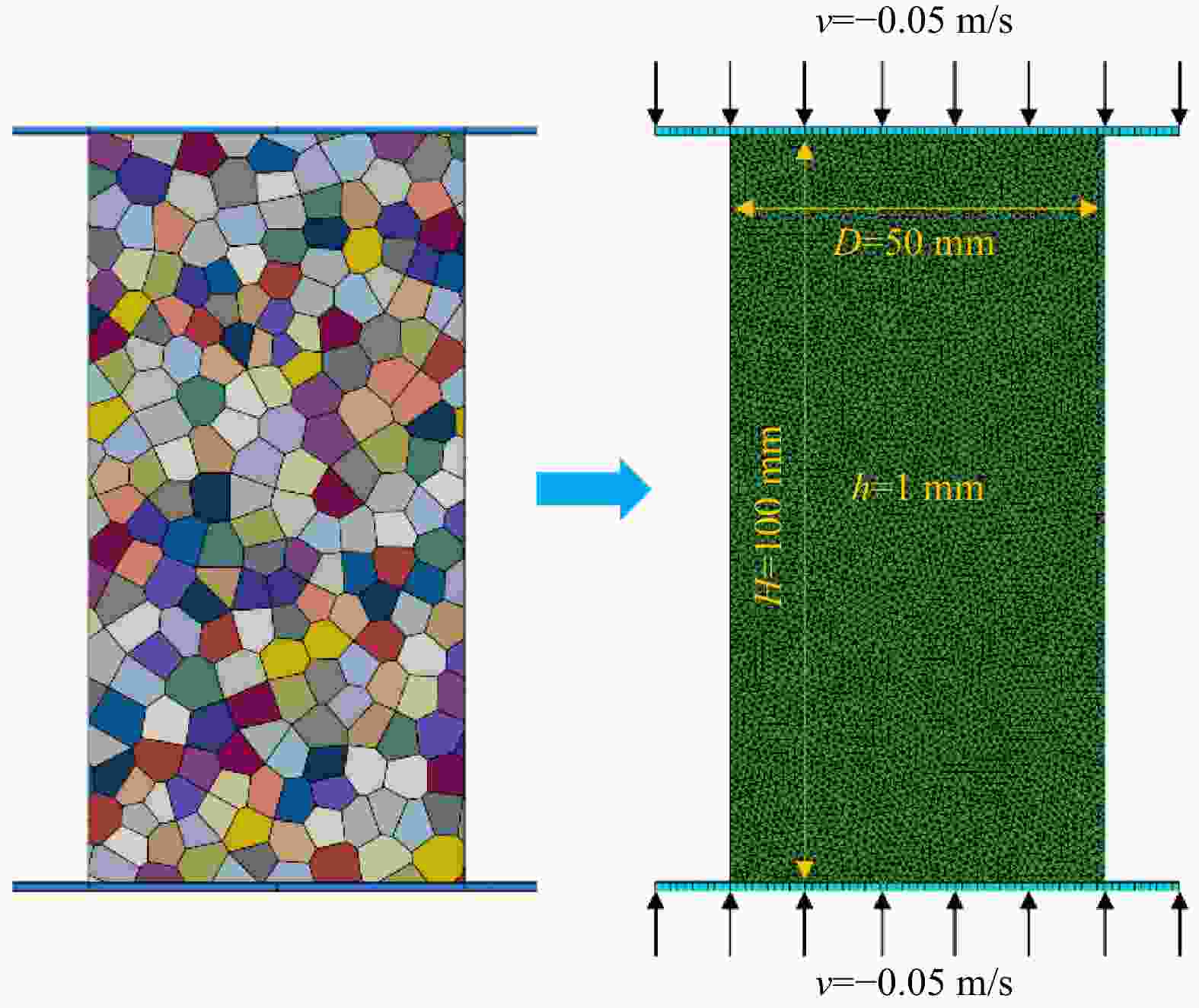 D. 模型直径;H. 模型高度;h. 网格边长;v. 加载速率;下同