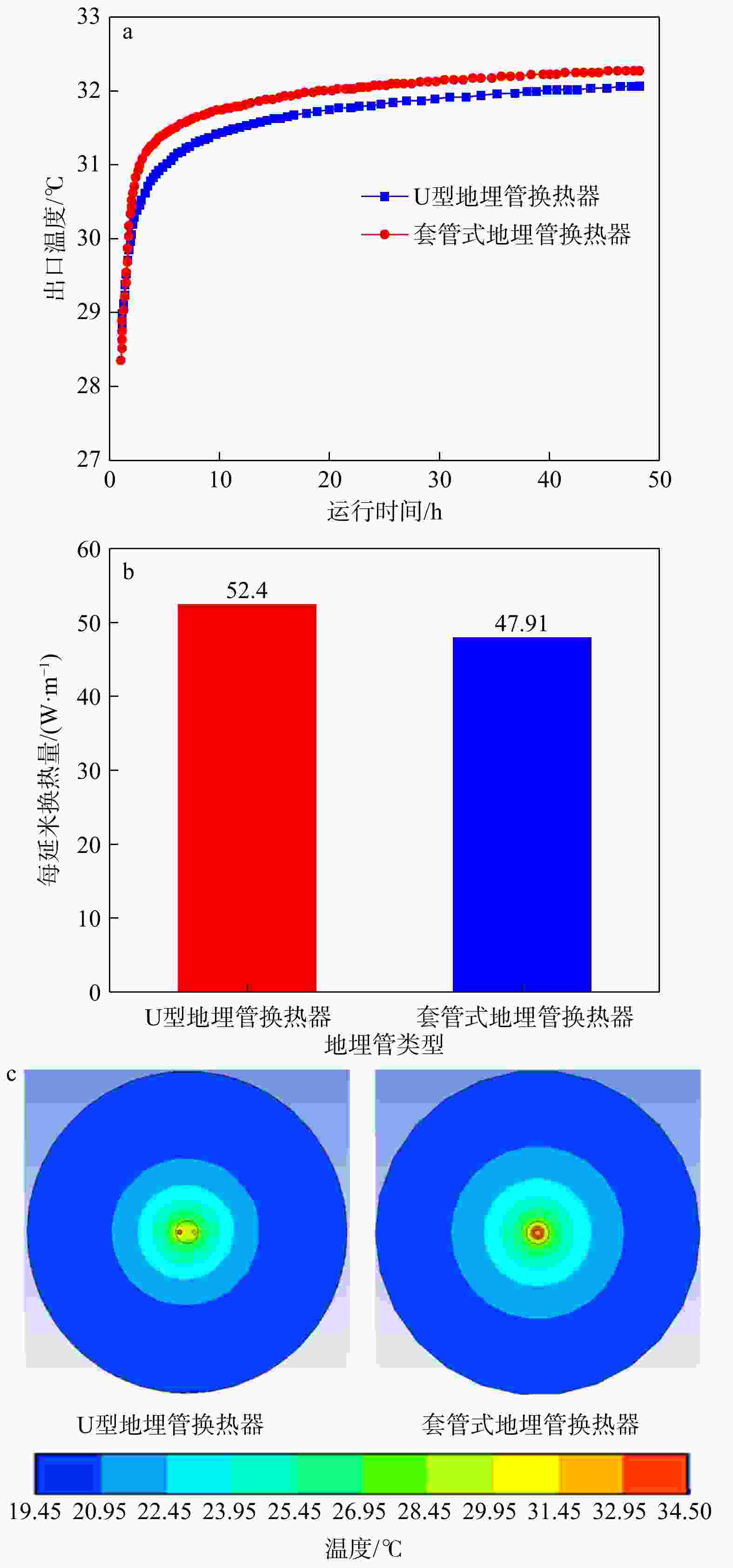 Results The findings demonstrate that when traditional PE pipes are employed for both the inner and outer pipes of a coaxial borehole heat exchanger, thermal short-circuiting occurs between the annular fluid and the inner pipe fluid, resulting in a 23% reduction in heat exchange efficiency. The sensitivity factors influencing coaxial borehole heat exchangers performance are ranked as follows: Inlet temperature, initial soil temperature, circulating flow rate, thermal conductivity of casing and inner pipe materials, and thermal conductivity of backfill material. Under identical conditions, the U-shaped borehole heat exchanger exhibits an 8.57% higher heat exchange efficiency compared to coaxial borehole heat exchanges. However, when a coaxial borehole heat exchanger's casing is constructed from steel and its inner pipe is insulated, its heat exchange efficiency exceeds that of the U-shaped borehole heat exchanger by 21.64%.