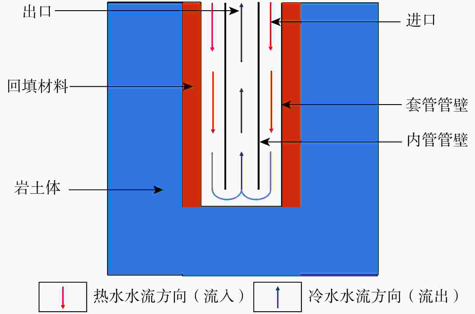 (W·m−1·℃−1)水 998.2 4182 0.6 PE管 980 2300 0.42 回填材料(中粗砂) 1900 1145 2.61 地层 2100 957 2.10 -