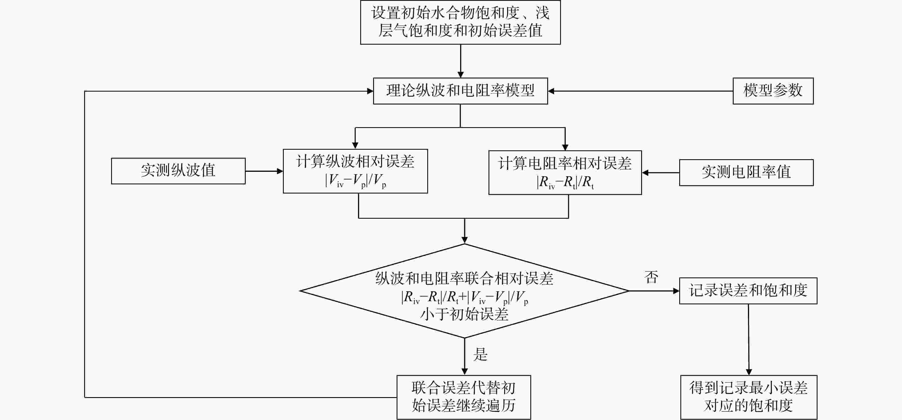 Methods To address this issue, this study fully leverages the differential responses of multi-physical logging in hydrates and shallow gas occurrences and proposes a novel joint inversion method based on multi-source information from P-wave logging and resistivity logging to improve the accuracy of hydrate-bearing gas layer saturation calculations. Guided by the "synchronous increase and decrease" logging response characteristics of hydrate-bearing gas layers in ultra-shallow unconsolidated sandstone reservoirs of the South China Sea, sandy intervals with low natural gamma, low shale content, high porosity, and stable thickness were comprehensively selected as reservoir layers. Qualitative identification was performed using porosity difference method, neutron-density curve overlap method, and shear modulus method. The neutron-density crossplot technique was employed to determine porosity, and by incorporating gas saturation into the three-phase Biot equation and Archie's formula, a cyclic iterative inversion method was used to simultaneously estimate P-wave velocity and resistivity, optimizing joint errors and ultimately solve for saturation of gas-hydrate-bearing layers.