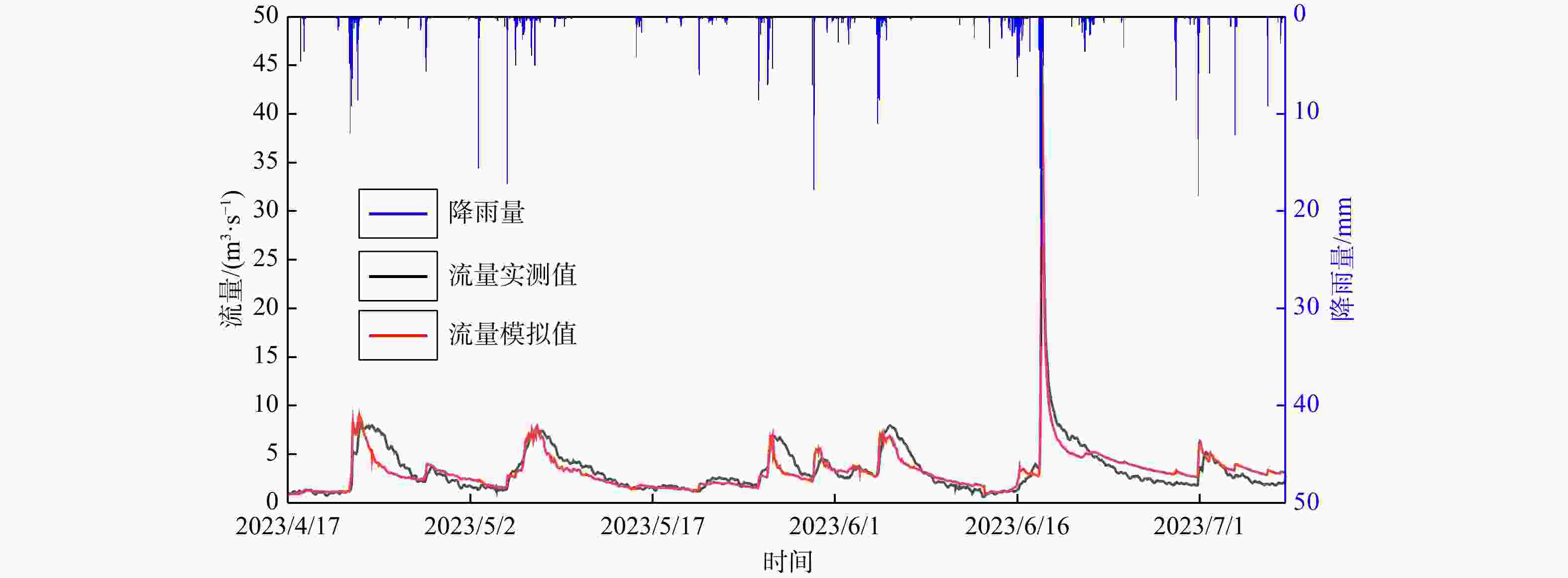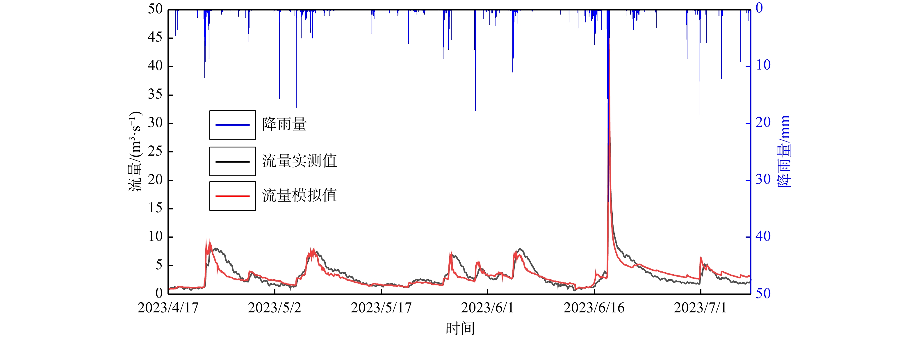 R 2) is 0.93, and the Nash-Sutcliffe efficiency (NSE ) is 0.86. During the validating period, the relative peak errors of the simulated outlet discharge of the Ganxi Yuquan Cave karst groundwater system compared with the measured values ranged from 1.1% to 2.5%, with peak-time lag within 2 hours,R 2 of 0.91, andNSE of 0.77, indicating good model performance.Conclusion These findings indicate that the coupled TOPMODEL and MODFLOW-CFP model developed in this study has practical value for simulating the rainfall-runoff and hydrological response processes of karst groundwater systems with external water recharge.
