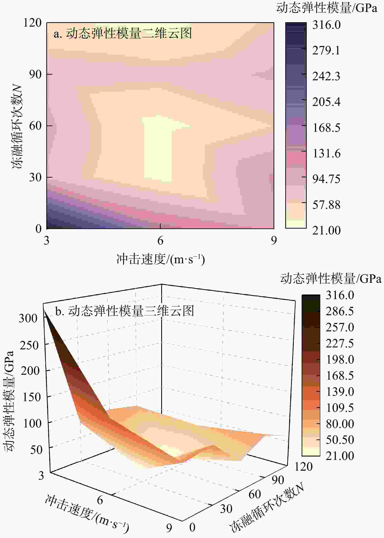 冲击速度/(m·s−1) a/10−3 b 3 2.04 1.8564 6 2.14 1.9314 9 1.36 2.1222 -