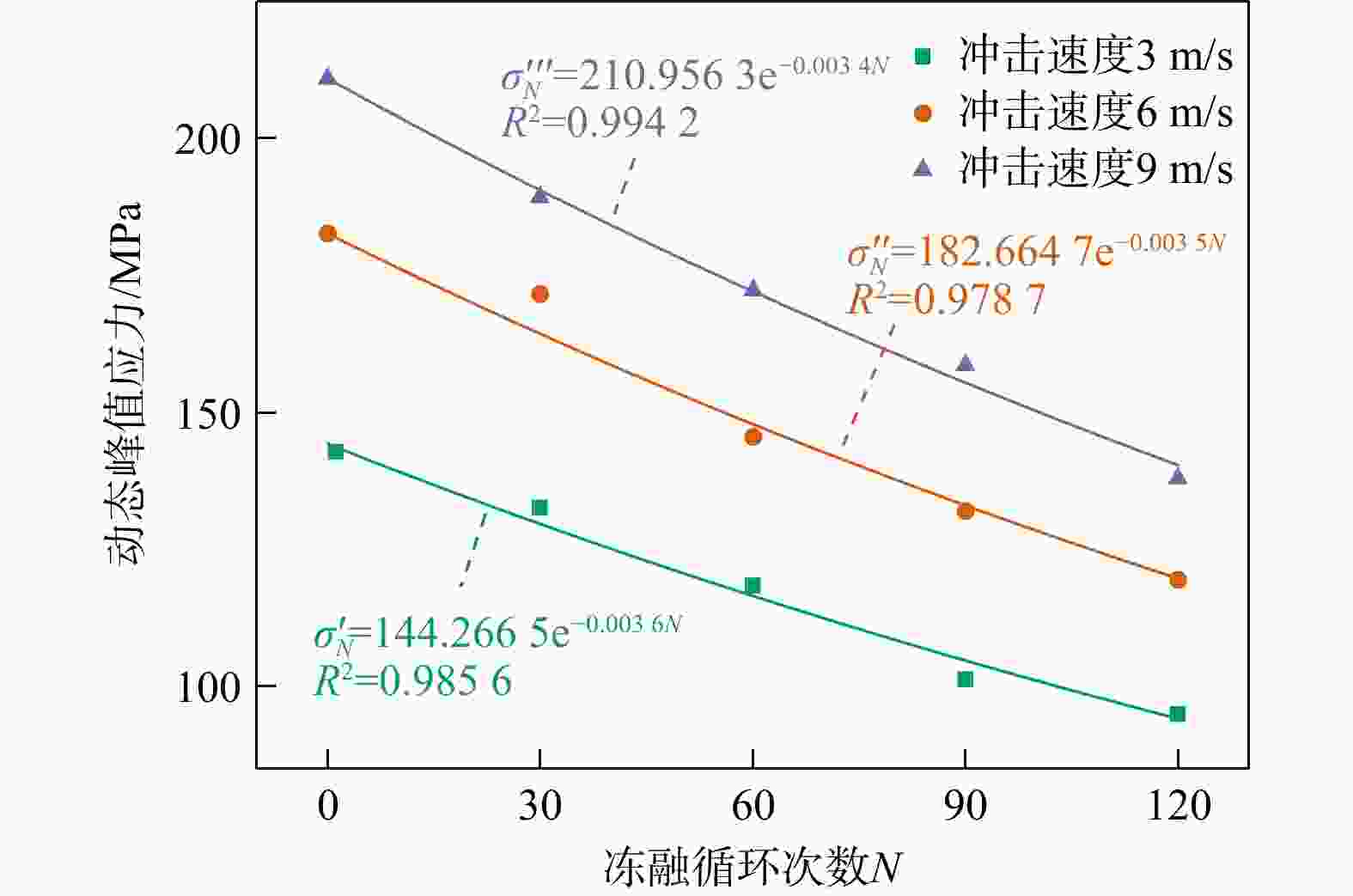 Table 3. Parameters of the dynamic peak stress model for freeze-thawed sandstone samples under different impact velocities