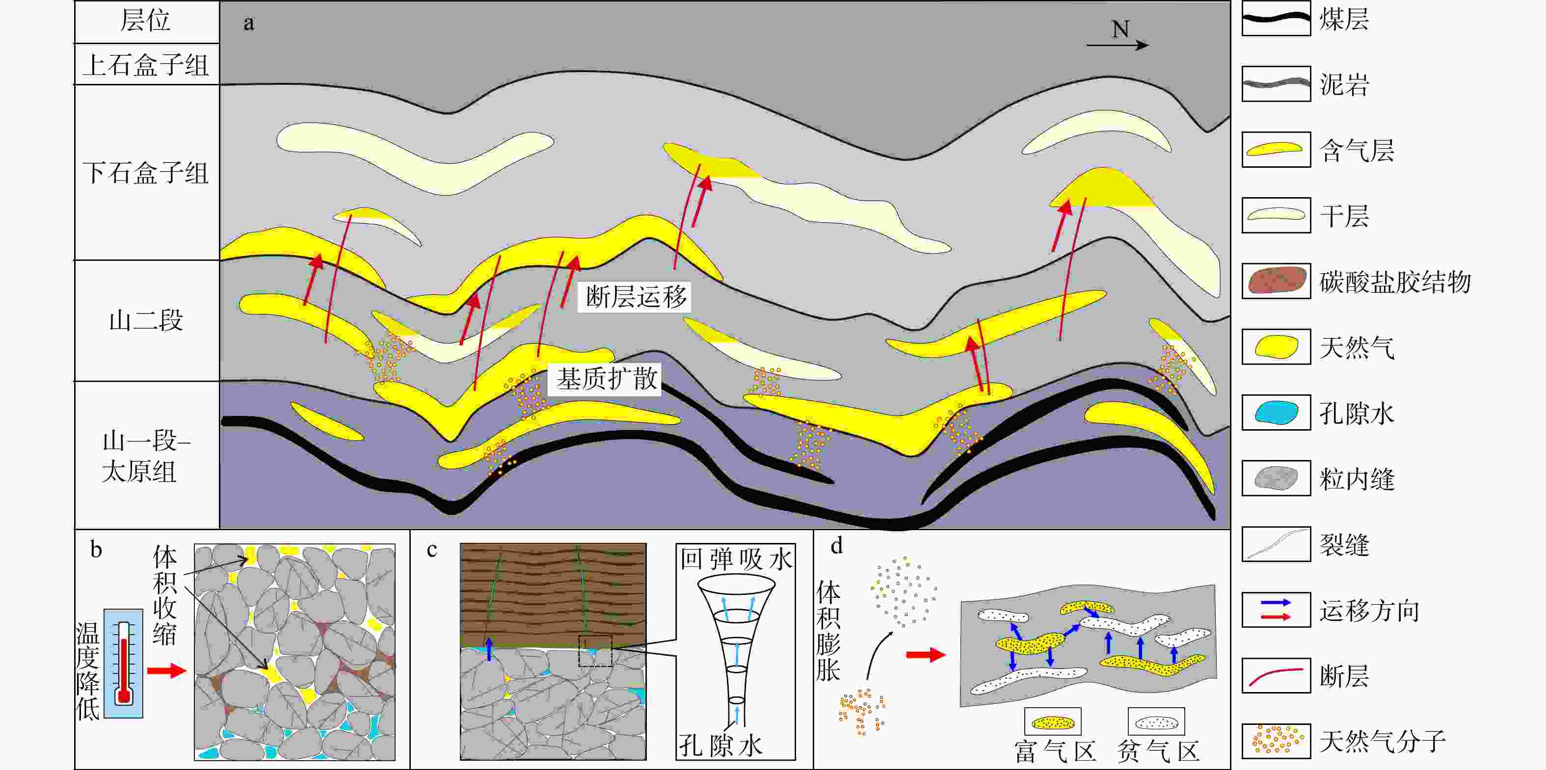 鄂尔多斯盆地北部新召地区上古生界砂岩储层富含天然气且普遍发育异常低压,对古压力演化以及现今异常低压形成机理认识尚不够深入,制约了致密砂岩气成藏规律的认识和增储上产。运用流体包裹体岩相学观察、显微测温和激光拉曼分析技术,综合分析山西组二段储层中油气充注历史,获取成藏关键时期的古压力;利用盆地模拟法恢复古压力演化史,建立古流体压力演化与油气充注的耦合关系,并进一步探讨异常低压成因与致密气成藏的成因联系。研究表明:(1)研究区山二段CO2包裹体捕获于距今180~170 Ma,此时烃源岩处于中−低成熟阶段,甲烷包裹体捕获于距今138~121 Ma的生烃高峰期;(2)山二段储层在早侏罗世开始发育超压,并在早白垩世末规模达到最大,古压力及古压力系数约为50 MPa和1.31;(3)由于温度降低、孔隙反弹和气体扩散等因素造成山二段地层压力降低分别约占总地层压力下降幅度的49%,14.5%和36.5%。山二段储层经历了常压−中等超压−常压−低压的演变过程,生烃增压与压力传导是古超压形成的主要原因,温度降低和天然气扩散是山二段异常低压形成的主控因素。