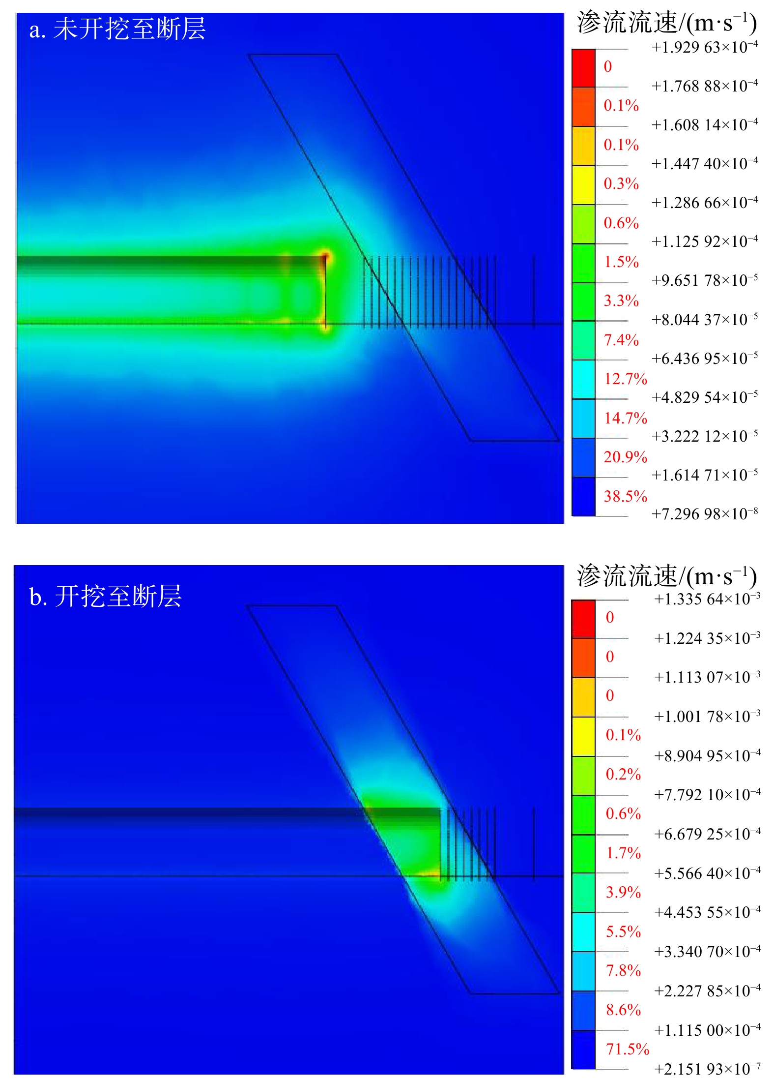 (cm·s−1)Ⅳ级围岩 20.1 21.5 4.11 0.32 23.1 0.3 4.13×10-4 断层 19.5 18 0.9 0.3 19 0.05 4.02×10−3 -