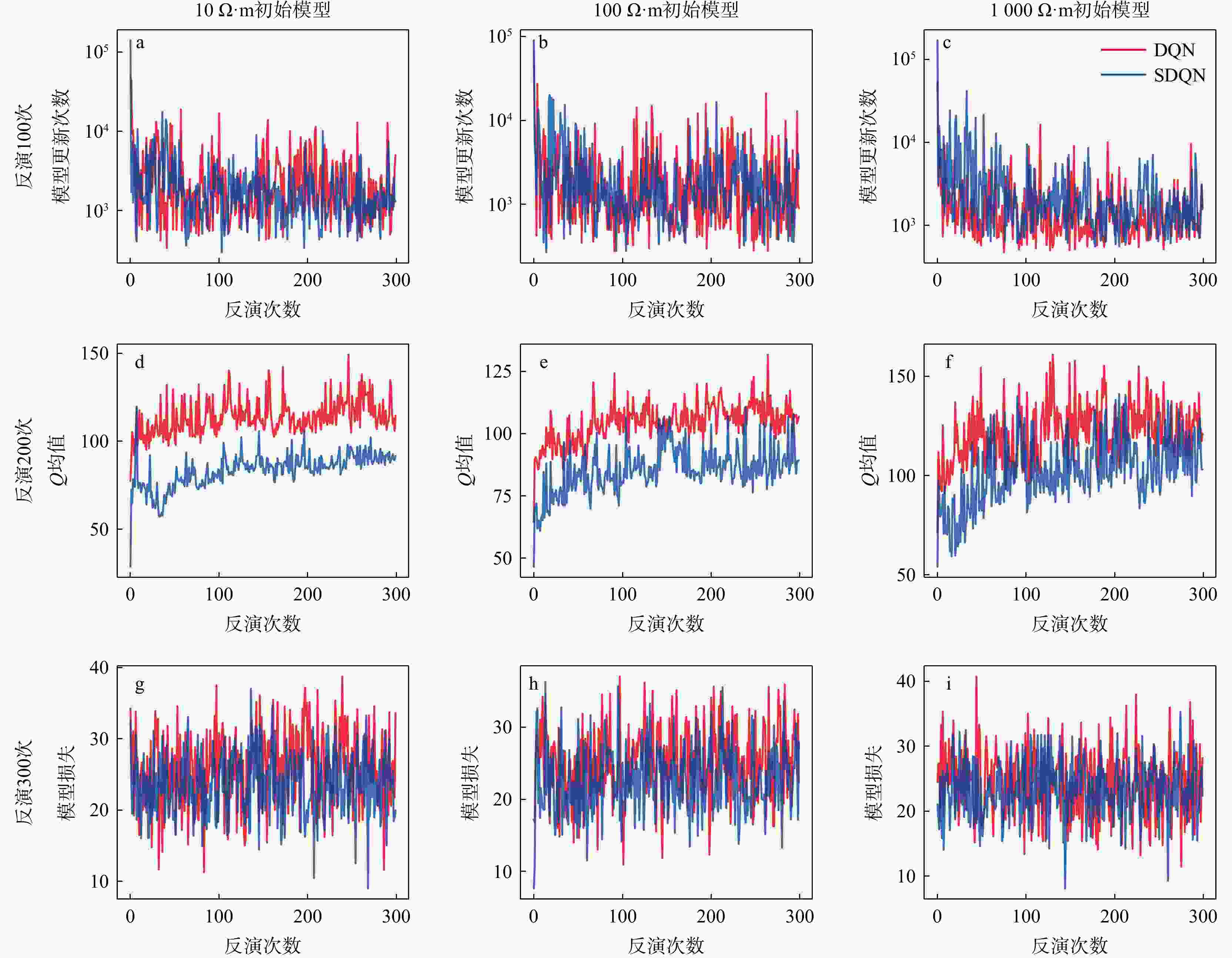 迭代次数 反演时间/s DQN SDQN 50 3287.29 3562.45 100 4164.09 4520.86 150 4918.86 5144.10 200 5628.15 5745.47 250 6304.54 6299.31 300 6944.33 6841.33 -