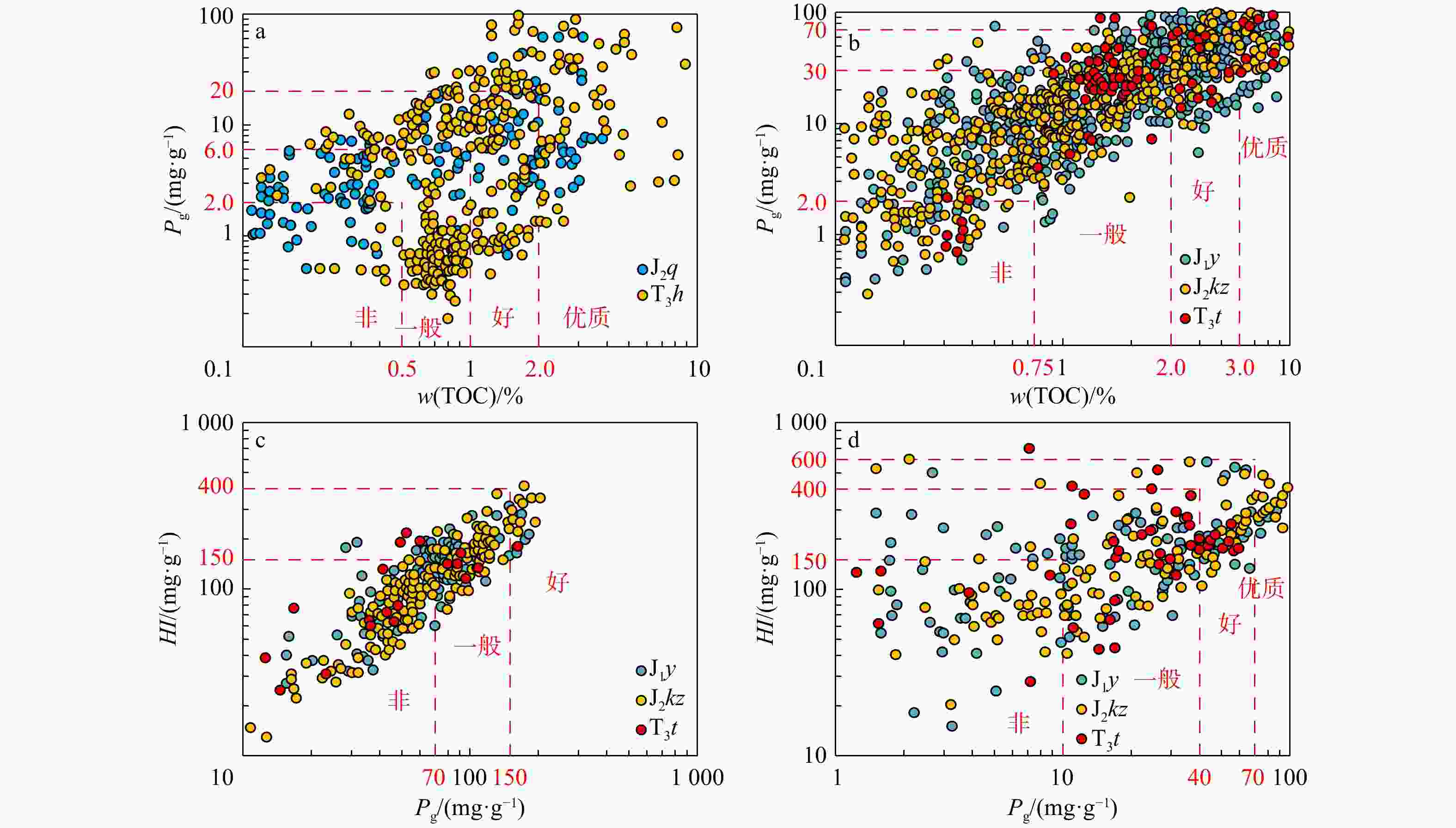 库车坳陷三叠系、侏罗系发育湖泊相和沼泽相间互沉积的5套烃源岩层系,按岩性可划分出煤、碳质泥岩和暗色泥岩,其烃源岩具有总有机碳(TOC)丰度较高、厚度大、分布范围广等特征。由于烃源岩纵向分布层系多,不同岩性分布及纵向非均质性强,导致常用的Δlg