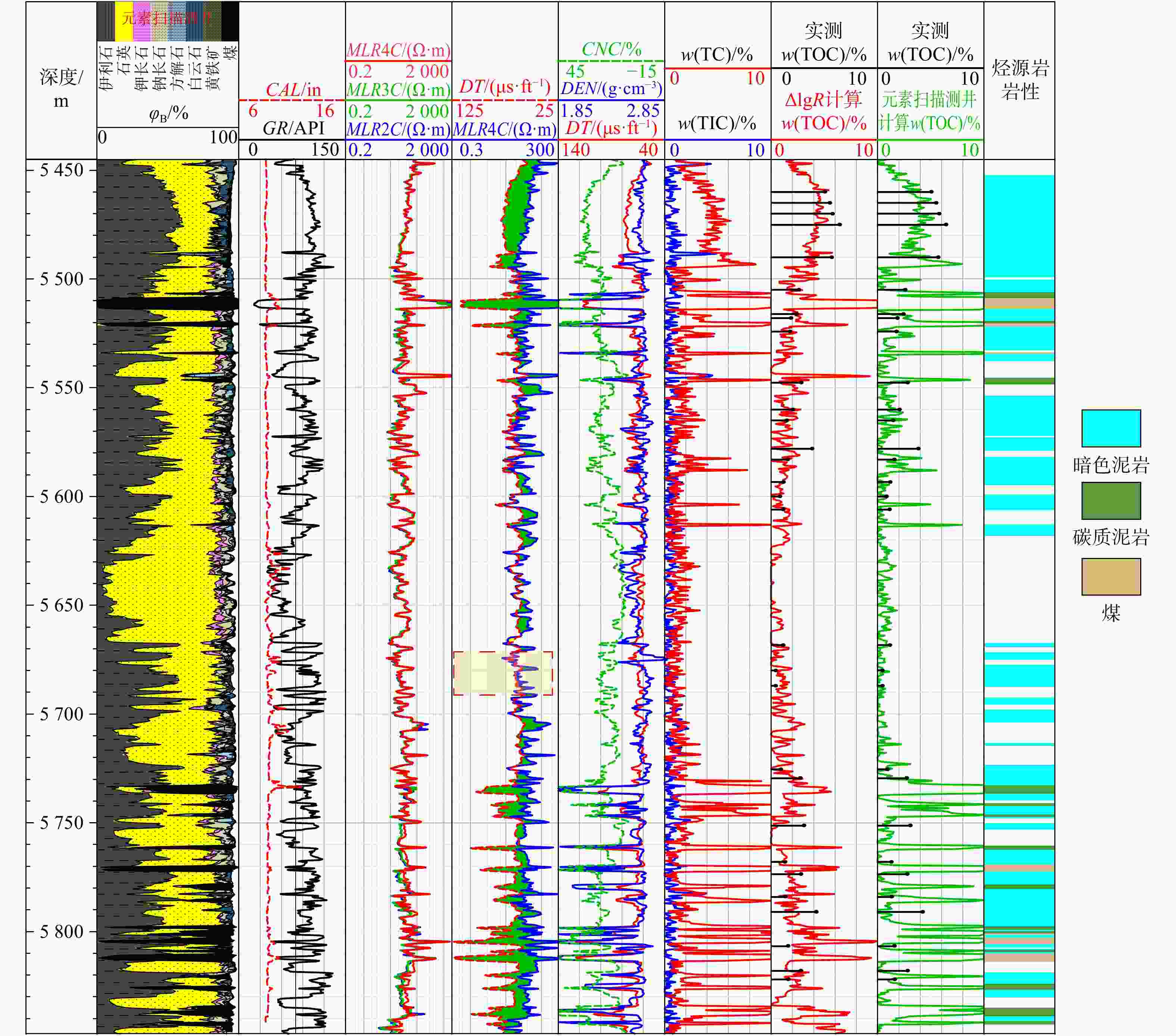 R method perform poorly in TOC logging quantification.Objective and Methods To better understand the hydrocarbon resource potential and assess reserves in the Kuqa Depression, this study first identified the lithological characteristics of the source rocks through core analysis. Further geological characterization was achieved using geochemical analysis data. The Δlg