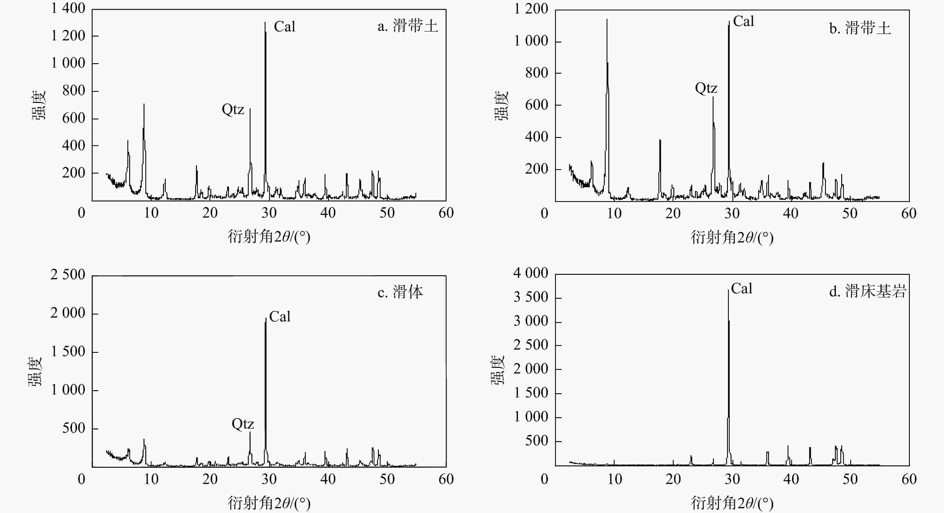 表 1 黄土坡滑坡剖面样品中主要矿物成分及其相对含量