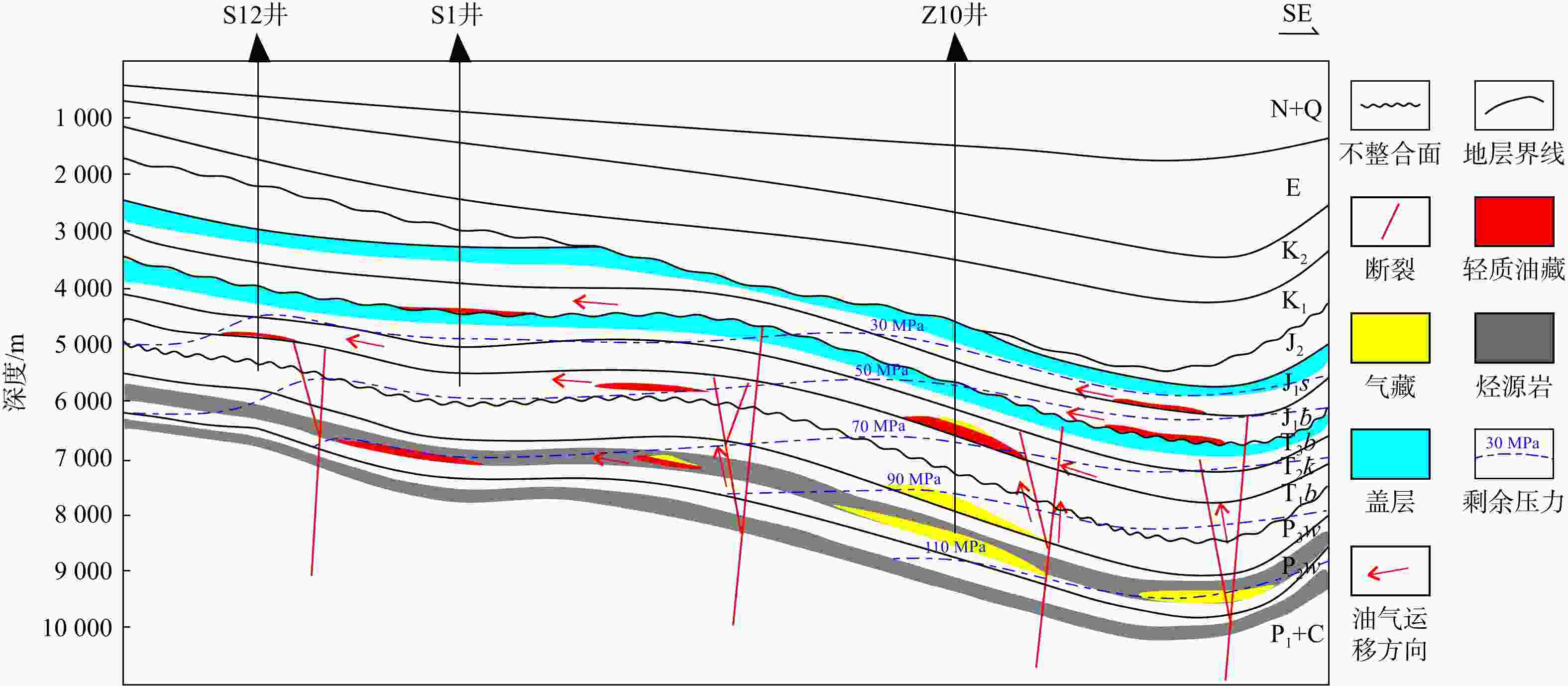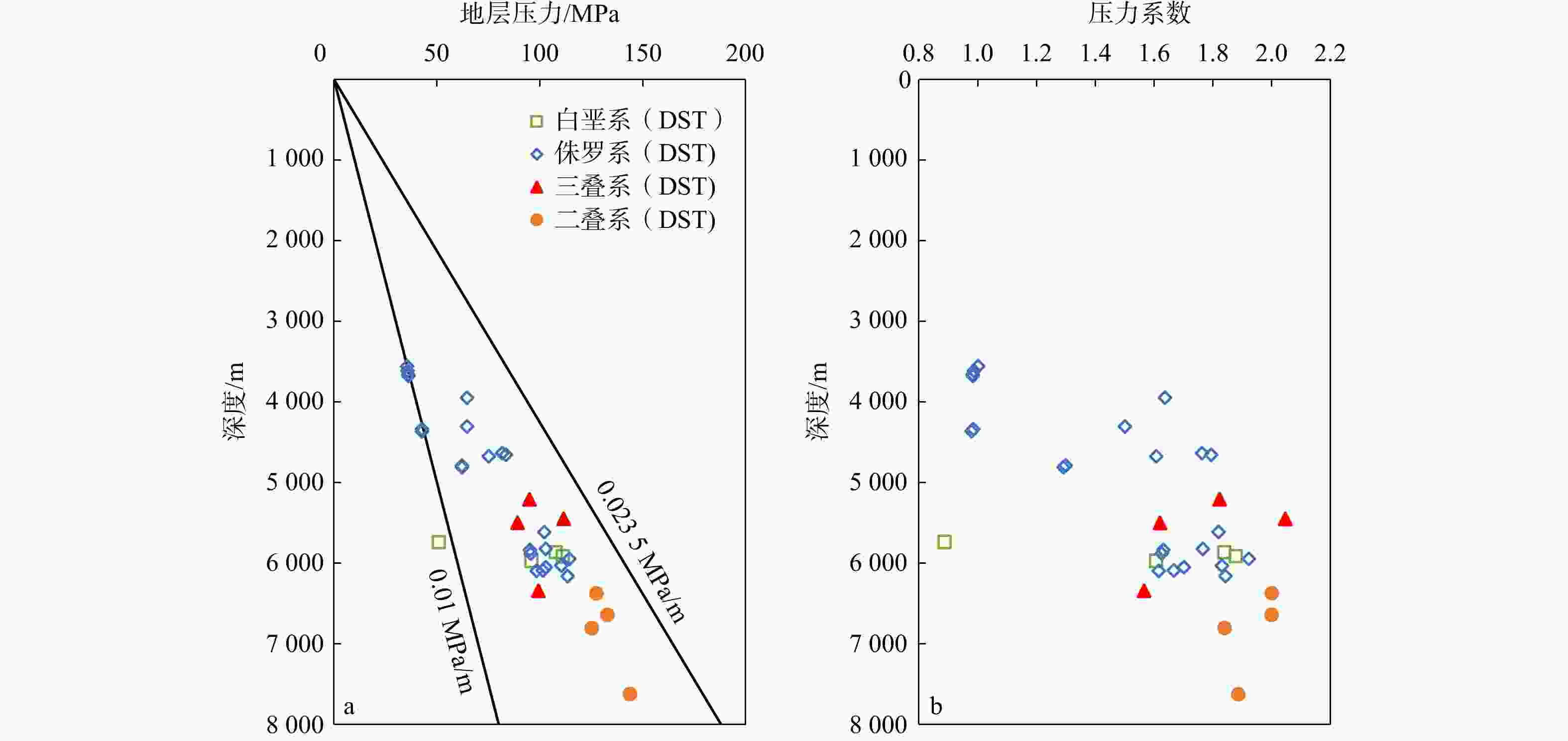 层系 测点数/个 深度范围/m 剩余压力/MPa 压力系数 白垩系 4 5740 ~5971.5 36~52 1.60~1.88 侏罗系 21 3556 ~6161 0~55 1.00~1.92 三叠系 4 5207 ~6342 34~57 1.56~2.05 二叠系 4 6347 ~7625 57~68 1.83~2.00 -
