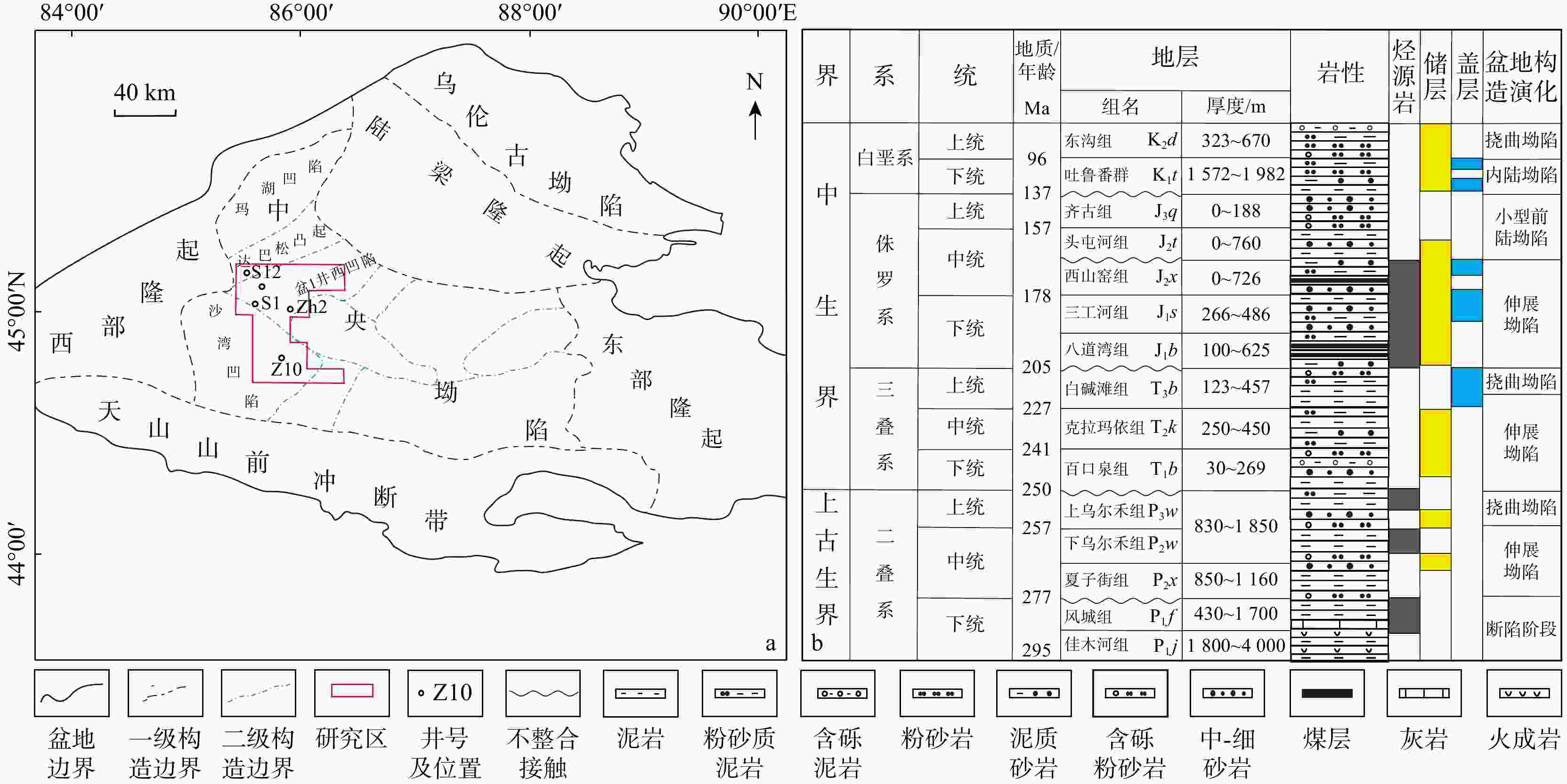 图 1 研究区构造位置(a)及地层发育特征(b)(据文献[33]修改)