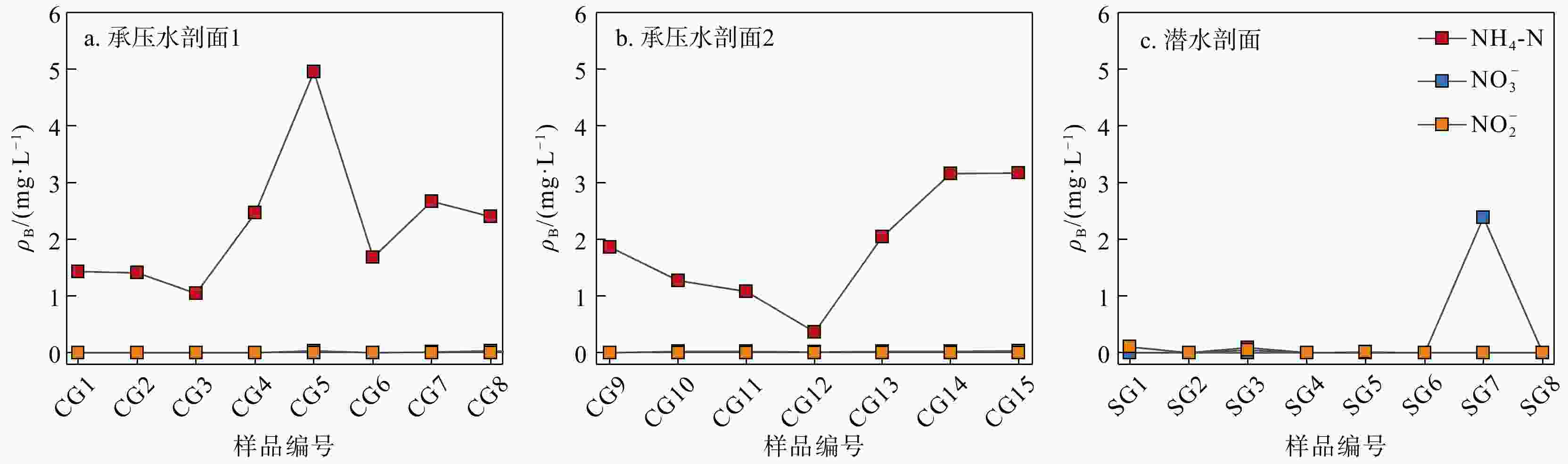 河湖−地下水交互带的复杂结构驱动着营养盐的迁移转化与归宿,探究氮素在地下水中的时空分布特征及其控制因素对于水质和生态系统的保护具有重要指导意义。以长江中游河湖−地下水交互带为研究对象,分别于丰水期和枯水期采集2个承压水剖面以及1个潜水剖面的地下水样品,进行水文地球化学分析,并运用随机森林模型探讨了氮素富集的控制因素。结果表明:地下水中氮素的主要存在形态为铵氮(NH4-N),丰水期承压水NH4-N质量浓度(0.37~4.96 mg/L, 均值2.07 mg/L)显著高于潜水(0~0.096 mg/L, 均值0.012 mg/L)。其低浓度Cl−/SO42−以及高浓度CO2/HCO3−指示NH4-N的富集与天然成因条件下含氮有机质矿化过程密切相关。相比承压水,潜水枯水期NH4-N质量浓度(均值1.25 mg/L)显著高于丰水期(均值0.032 mg/L),呈显著的季节性变化,且其Fe/Mn比值也相对较高。结合水位波动情况,潜水受人为活动影响较大,该含水层中NH4-N富集后可进一步发生厌氧铁铵氧化过程。研究成果丰富了河湖−地下水交互带氮素赋存规律的认识,并可为氮循环相关的生物地球化学过程提供理论基础。