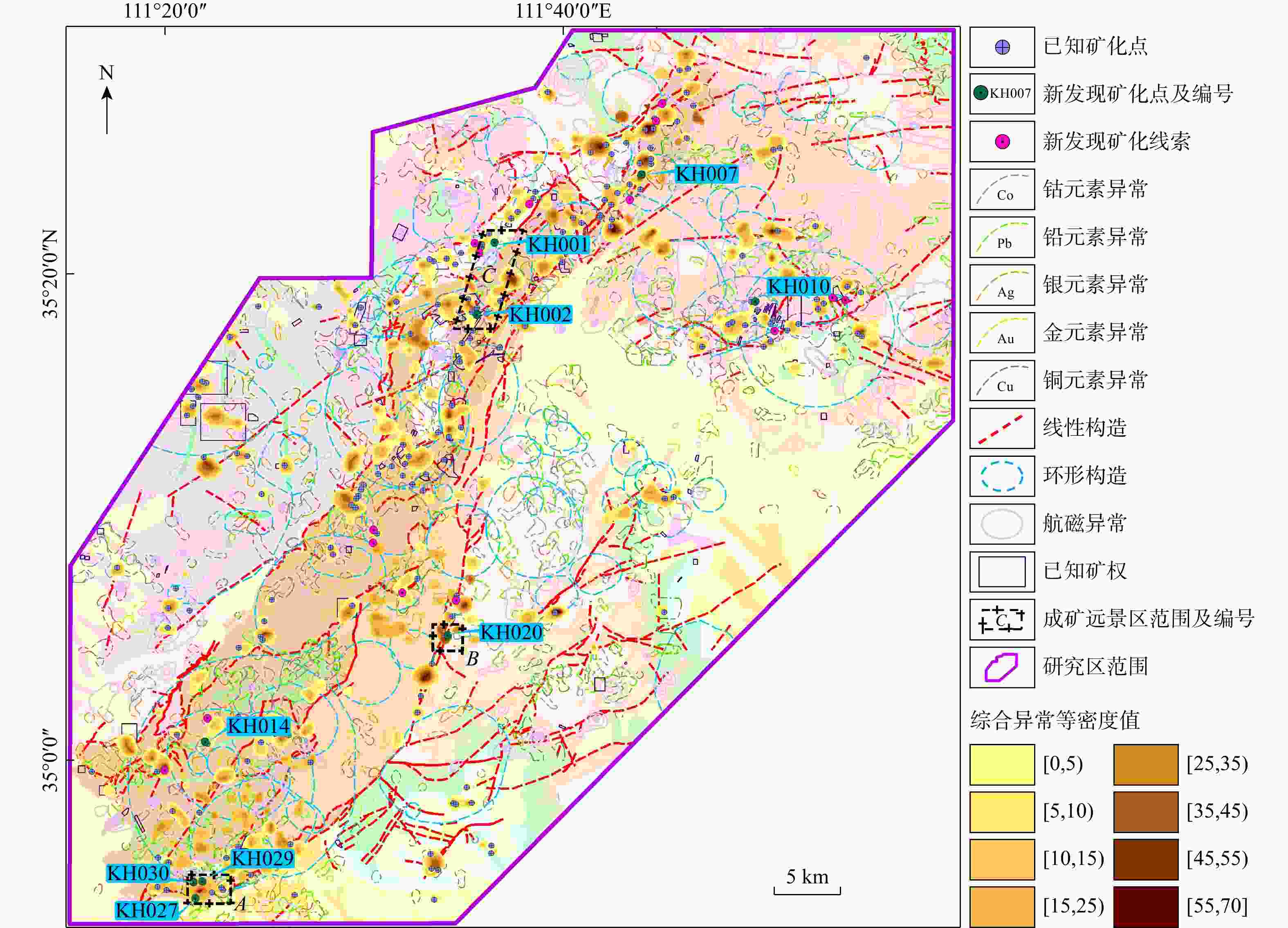 图 13  综合异常等密度图