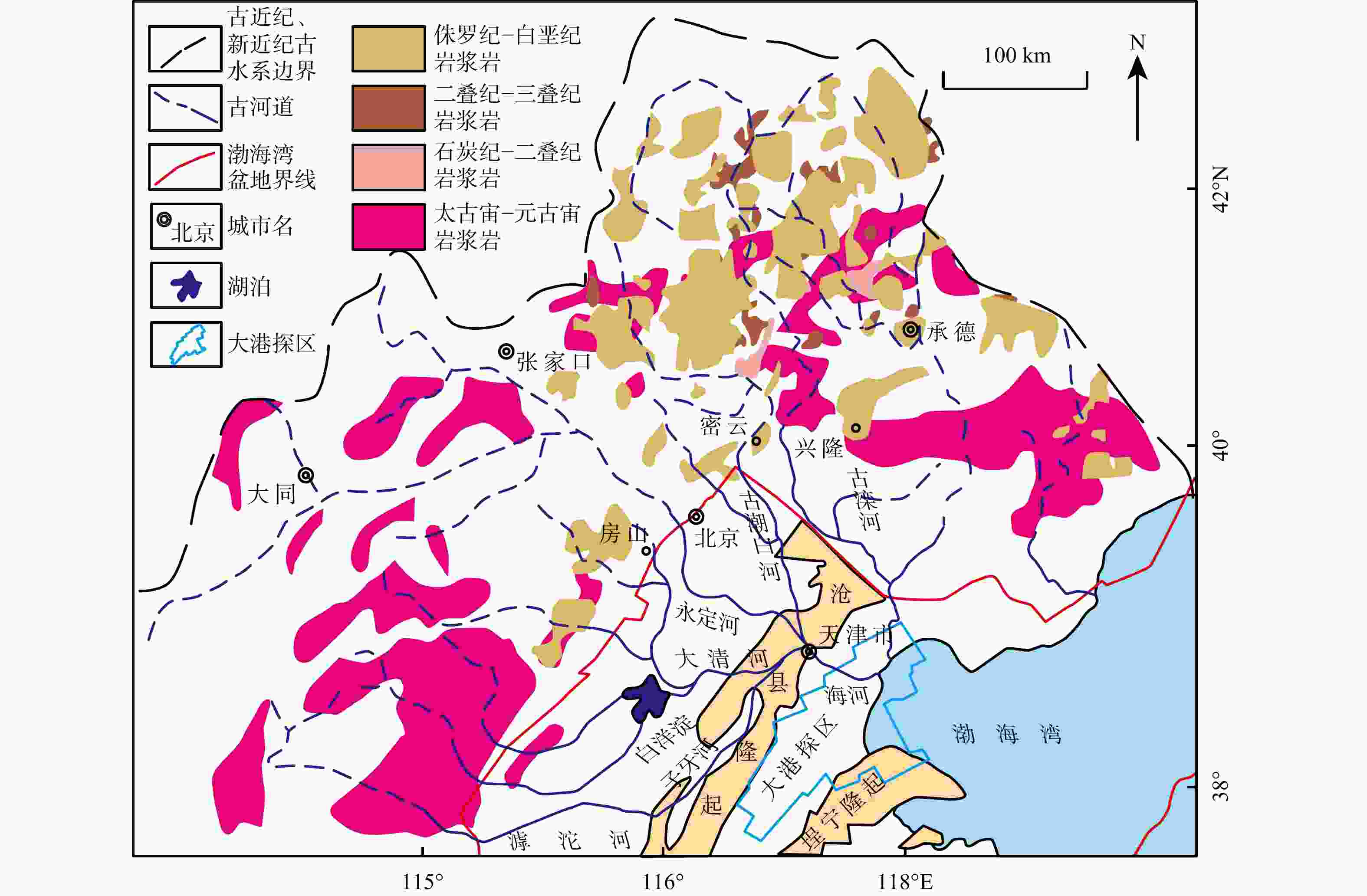 图 9 华北古近纪−新近纪水系与燕山地区岩浆岩空间分布图[43]