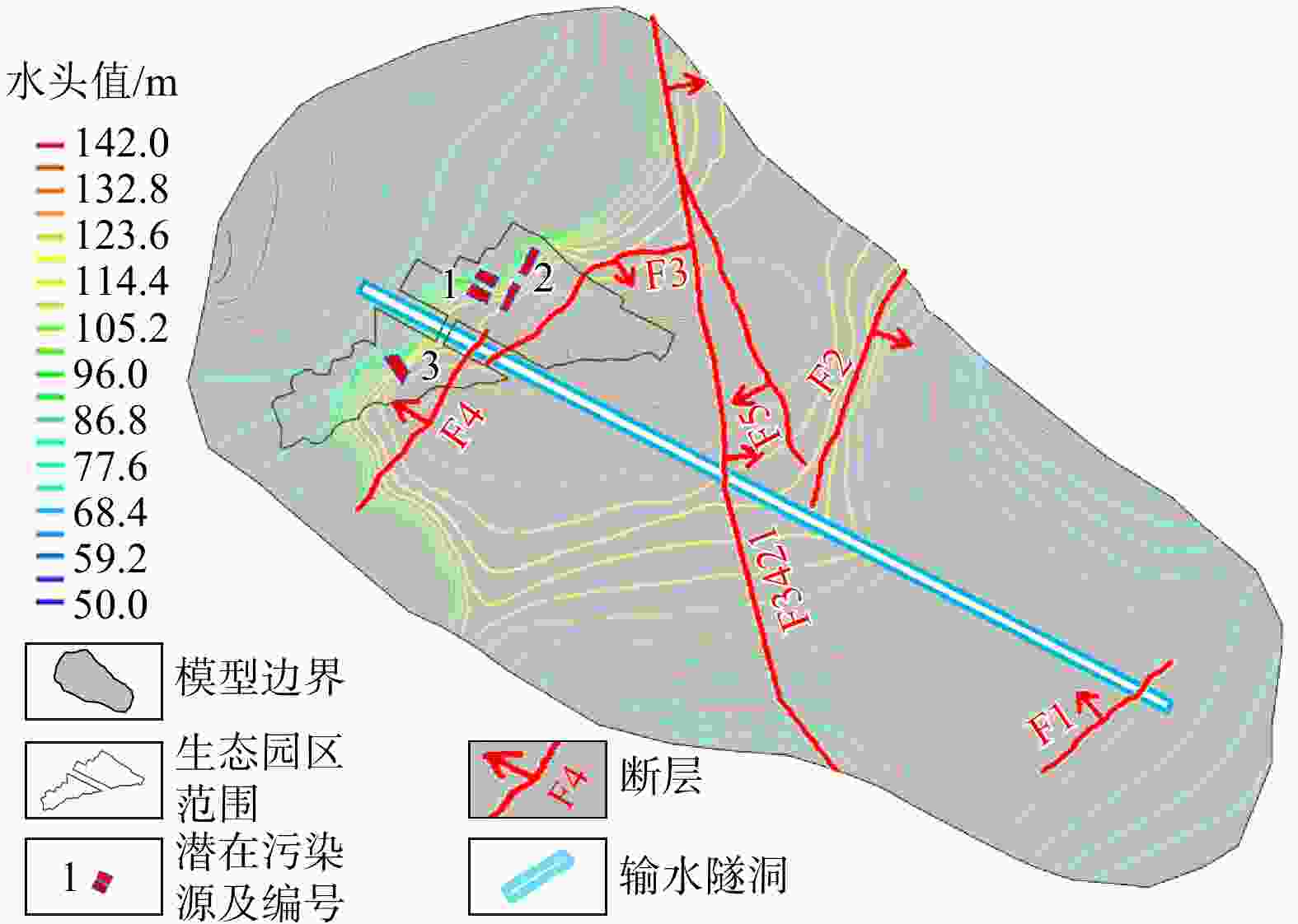 断层作为地质构造的重要组成部分,通过改变地下水流动路径、渗透性分布和溶质运移机制,显著影响污染物在地下水系统中的扩散范围和速度,然而国内外针对断层对垃圾填埋场地下水污染迁移模拟的研究尚不多见。基于GMS软件构建了包含断层渗透性的地下水流和溶质运移模型,开展了不同工况及断层渗透性增强下垃圾填埋场特征污染物渗漏对地下水环境和输水隧洞的影响模拟。模拟结果表明:在正常工况下,由于厂区底部防渗措施,污染物扩散范围基本限于厂区内部,且污染物中心最高质量浓度小于0.5 mg/L;在非正常工况下,1号、2号和3号污染源渗漏情景下污染物分别在第800,40151095 d扩散运移至输水隧洞所在位置,3种渗漏情景下污染物垂向扩散范围逐渐增大,但在平面上扩散范围存在较小差异。在1号和3号污染源情景下断层F4渗透性增强对污染物运移存在较大环境风险,在2号污染源情景下断层F3渗透性增强对输水隧洞区域未产生更大的环境风险。研究结果可为研究区地下水污染防治和风险评价提供科学支撑。