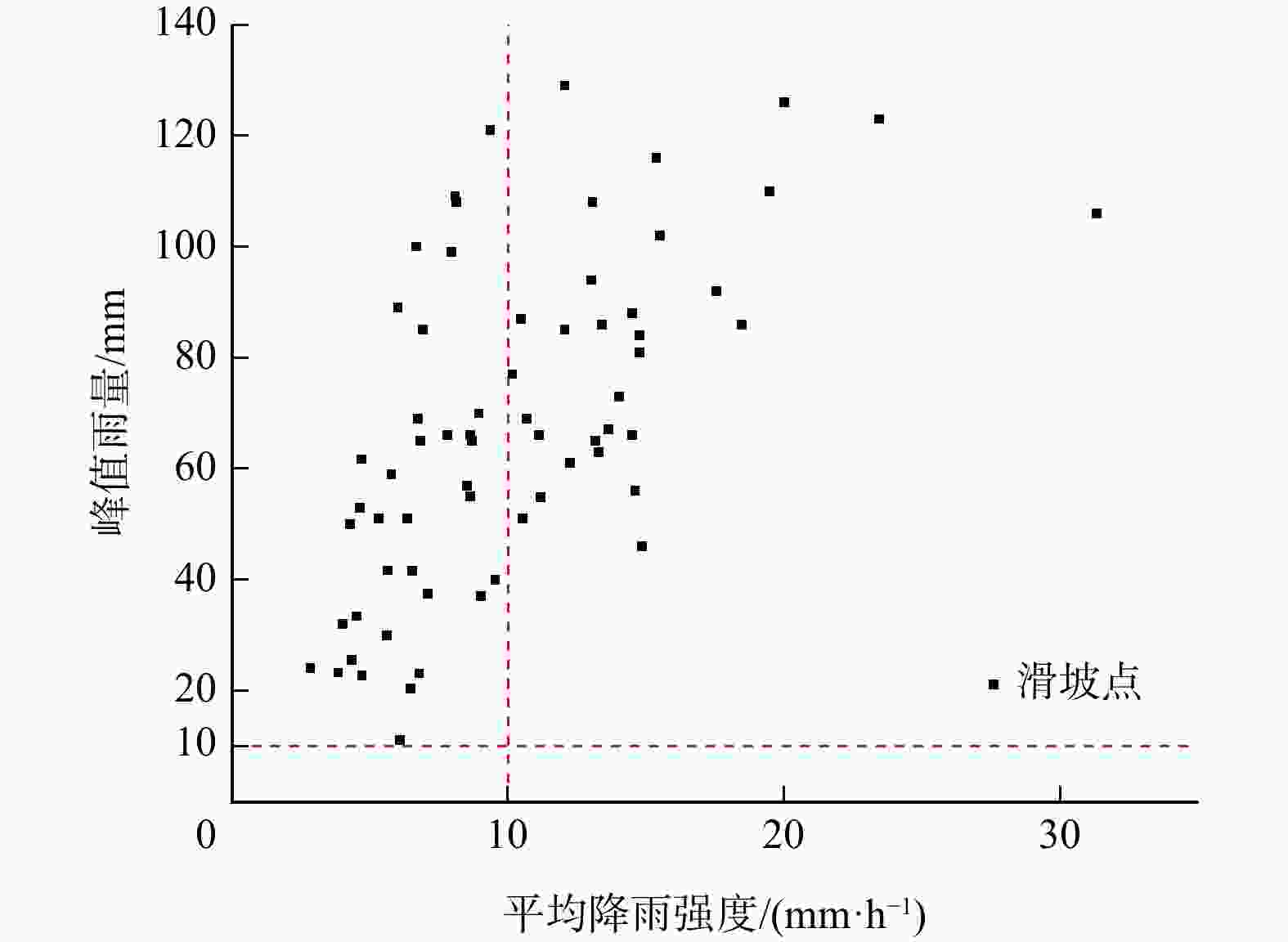 图 5  研究区滑坡发生时峰值雨量与平均降雨强度