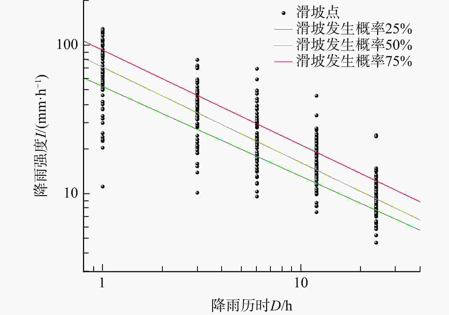 图 6  研究区降雨强度−降雨历时(I-D)降雨阈值曲线