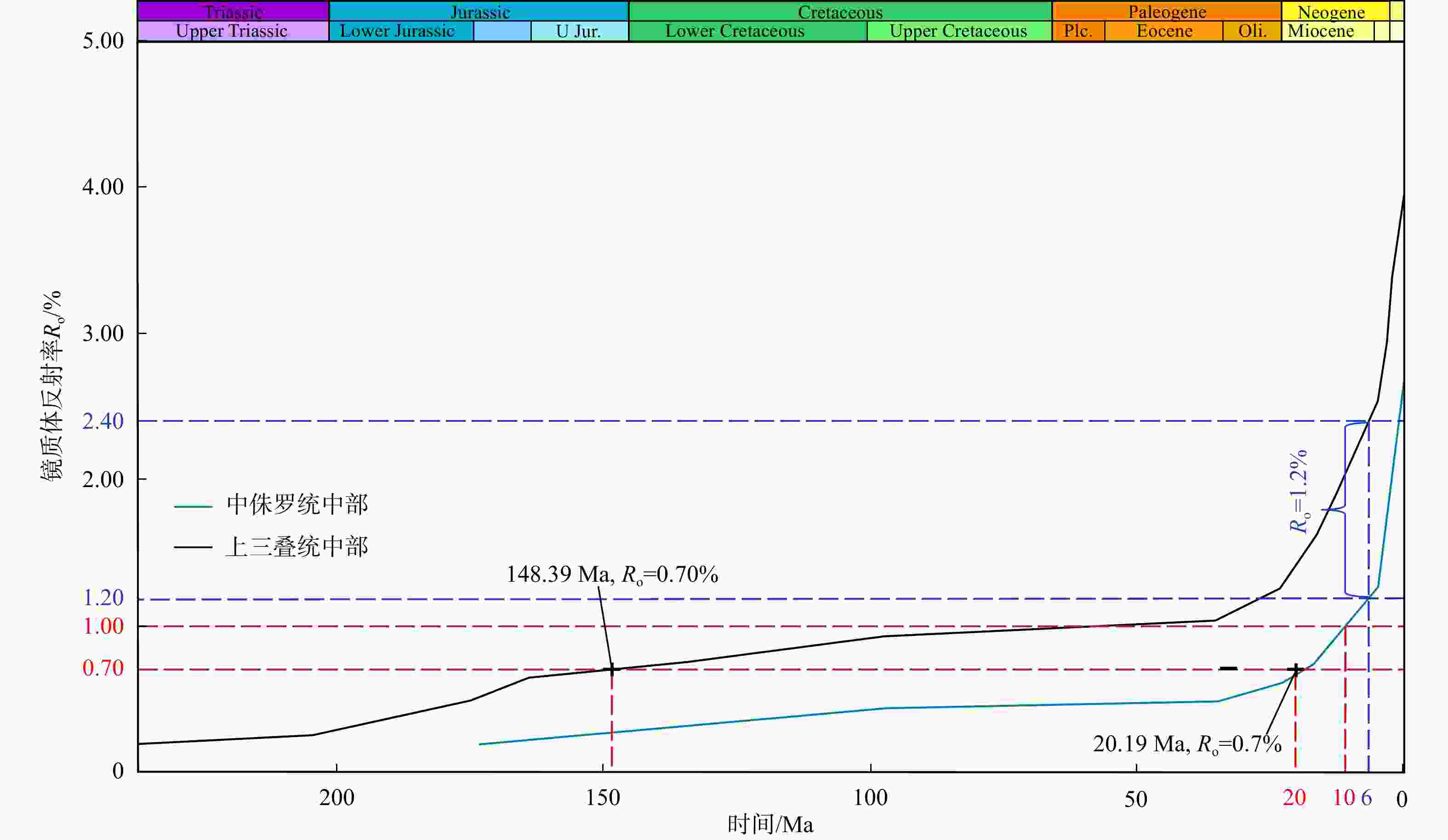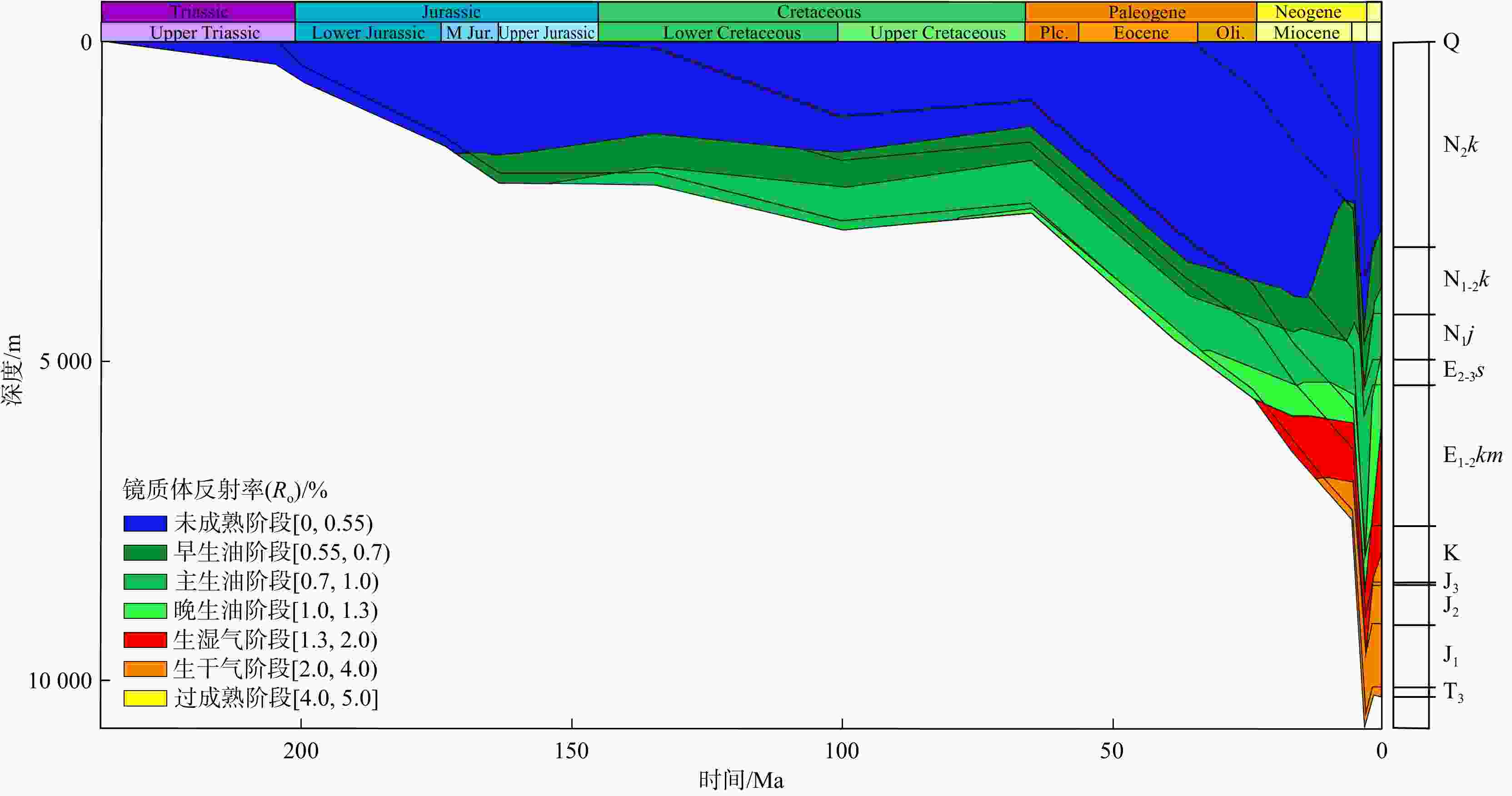 Figure 10. Reconstructed burial and thermal histories of simulated well in Kuqa Depression