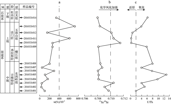 The study of the isotopic and elemental geochemical characteristics and genesis of critical metal-enriched pyritic ore in the Puyi area of Northwest Guizhou provides more abundant information for the exploitation of pyritic ore resources, comprehensive utilization and evaluation of associated beneficial elements, and understanding the mechanism of critical metal-enriched pyritic ore. Based on the comprehensive collection of existing geological and mineral data, combined with field investigation, the geochemical characteristics and genesis of pyrite in this area are studied by using element geochemistry and sulfur isotope analysis, and the metallogenic model is preliminarily established. The study shows that the critical metal-enriched pyritic ore mainly occurs in the crystalline tuff at the bottom of the Longtan Formation of the middle Permian(P2l), and the ore body is simple in shape and distributed in layers. The beneficial elements, such as REEs, Li, Nb, Zr, Li, Nb, Zr, Ga, can be comprehensively utilized. The results show that ΣREE usually ranges from 180×10-6 to 1 630×10-6, with an average of 431.24×10-6 and up to 1 634.57×10-6; Ga usually ranges from 25×10-6 to 120×10-6, with an average of 32.51×10-6 and up to 120.00×10-6; Nd generally ranges from 40×10-6 to 380×10-6, with an average of 103.29×10-6 and up to 380.00×10-6; and the maximum values of Li and Al2O3 are 1 366.00×10-6 and 42.17%. The REE distribution pattern of pyritic ore is characterized by enrichment in LREEs and relative depletion in HREEs. The ore-forming elements Ga, Li, Zr, Ti, Se, Cd, Nb, V and Hg are relatively enriched, while Ba, Sr, Zn and Te are relatively depleted. The δ34S of pyrite in pyritic ore mainly range from -33.90‰ to -18.60‰(on average of -16.04‰), which shows the characteristics of the enrichment of light sulfur. The sulfur source of critical metal-enriched pyritic ore was greatly affected by the reduction of biological bacteria. Pyritic ore is mainly formed in the sedimentary stage by microbial iron reduction, microbial sulfate reduction and chemical iron reduction. It is suggested that REEs in pyritic ore mainly occur in clay minerals in the form of similar isomorphic substitution, and the formation process can be divided into the weathering transportation stage, sedimentary mineralization stage and diagenetic epigenetic stage.