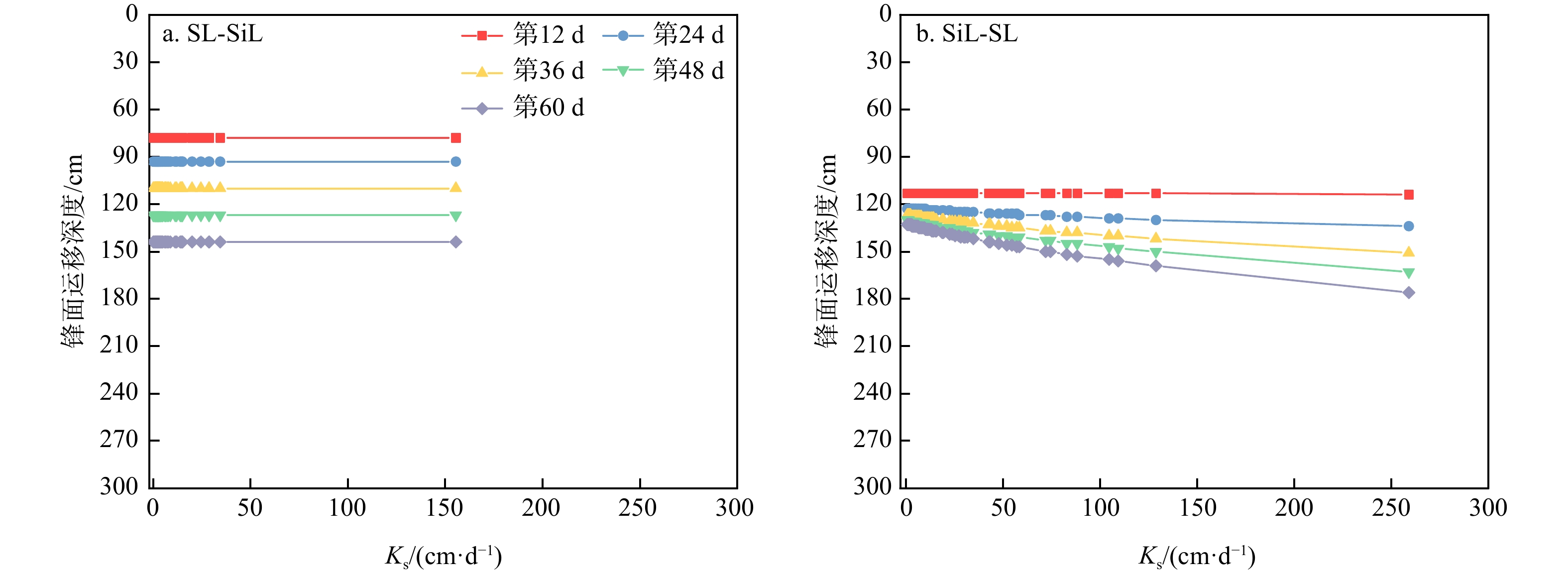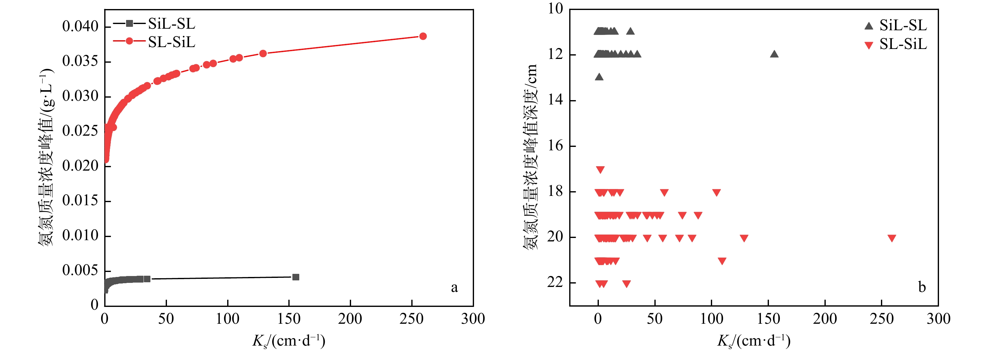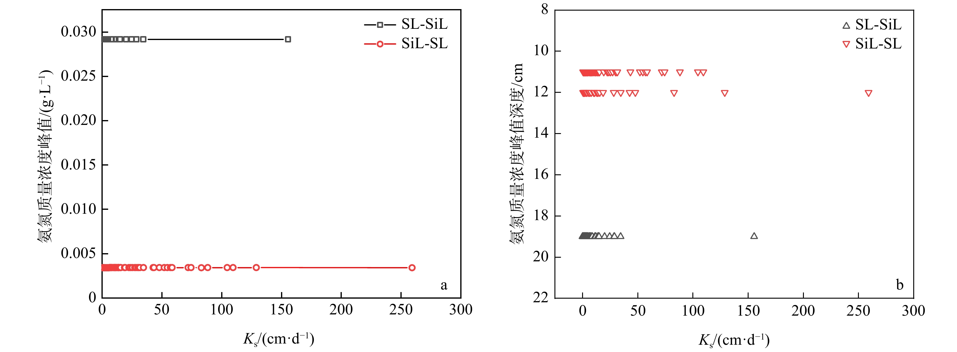 The results show that, when considering the uncertainty of the saturated hydraulic conductivity of the upper soil, the migration depth of the NH4+-N front, the peak concentration, and the depth of the concentration peak-along with their variation ranges, are all greater in the "coarse on top and fine on bottom" lithologic configuration than in the "fine on top and coarse on bottom" configuration. When considering the uncertainty of the saturated hydraulic conductivity of the lower soil, these three indicators are less sensitive to conductivity uncertainty in the "coarse-upper and fine-lower" structure, whereas the impacts are relatively more significant in the "fine-upper and coarse-lower" structure. Comparison of the simulation results indicates that the uncertainty of saturated hydraulic conductivity in sandy loam exerts a stronger influence on the magnitude and depth of NH4+-N concentration peaks than that in silty loam. This suggests that, within double-layer vadose zones, the uncertainty of saturated hydraulic conductivity in coarse-textured soils plays a more significant role in controlling solute transport.