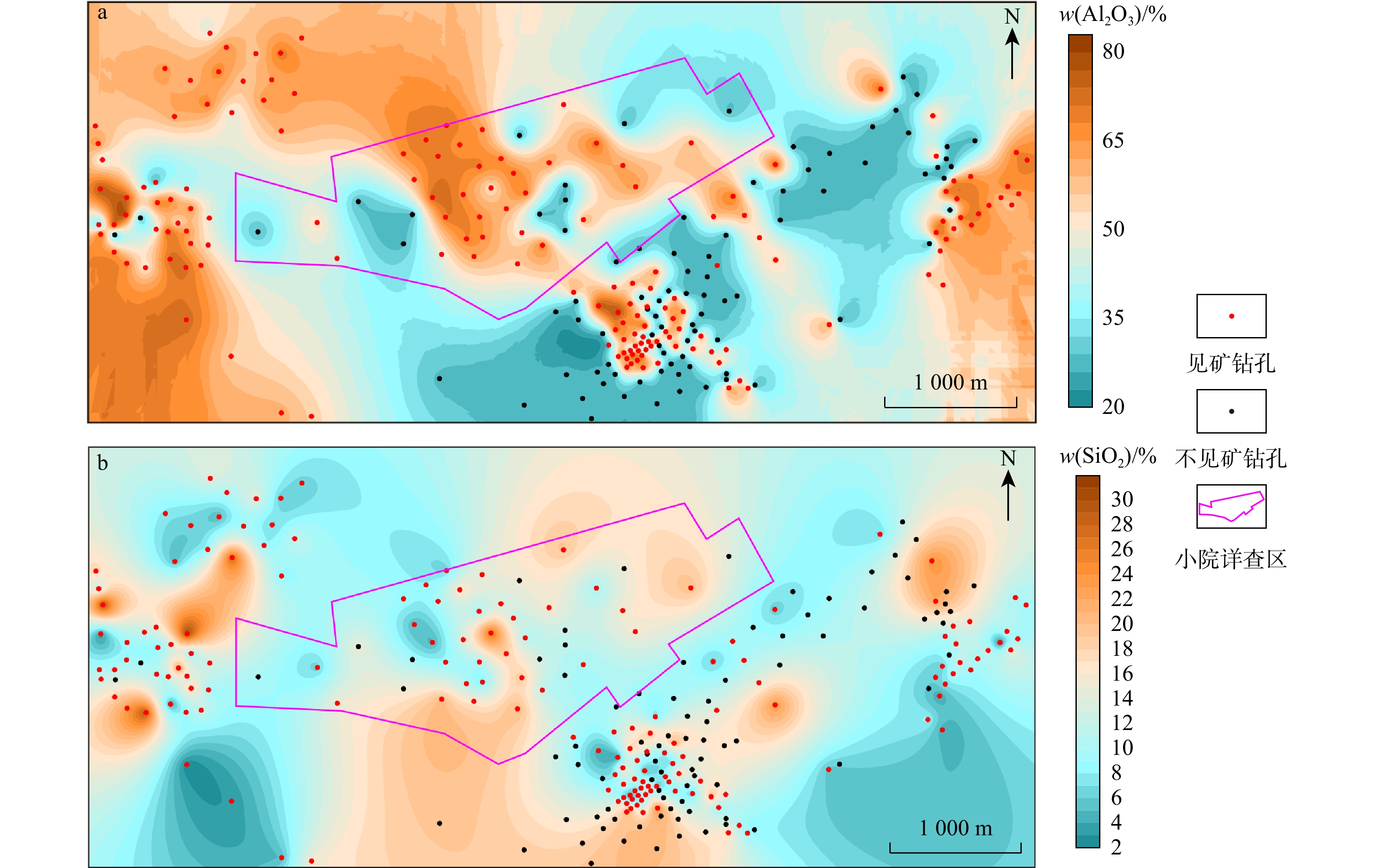 This paper utilizes drilling and testing data from Xiaoyuan bauxite mining area, and employs the thickness of the Paizuo Formation and Jiujialu Formation (C1
